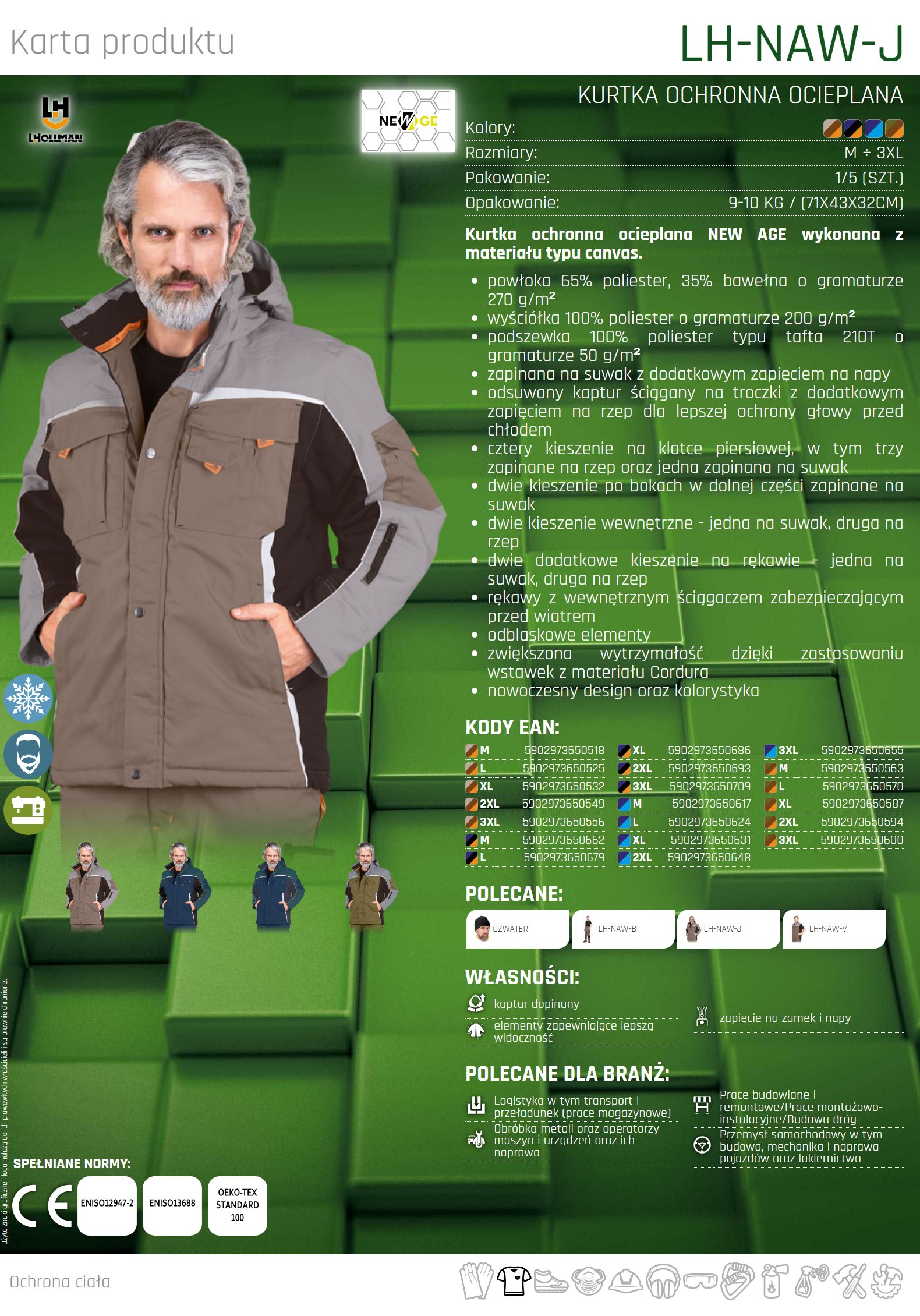 Kurtka ochronna ocieplana NEW AGE wykonana z materiału typu canvas LH-NAW-J GN