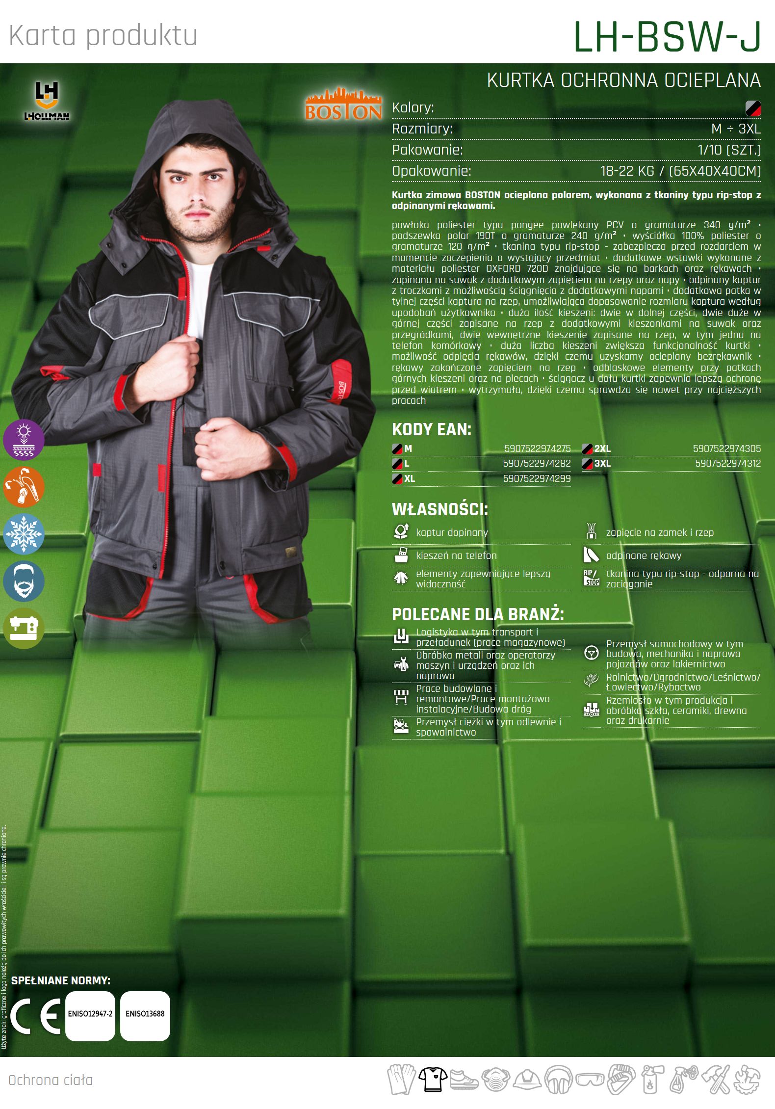 Kurtka zimowa BOSTON ocieplana polarem, wykonana z tkaniny typu rip-stop z odpinanymi rękawami LH-BSW-J SBC