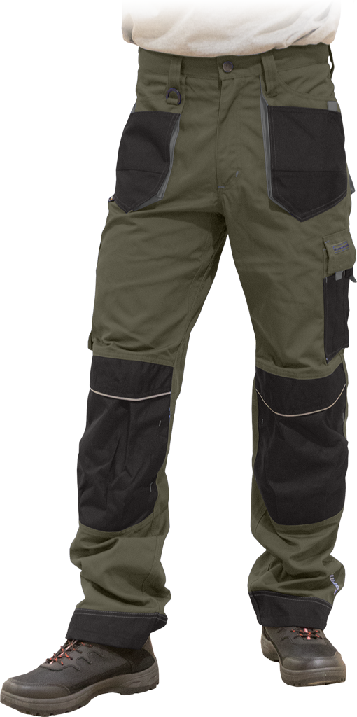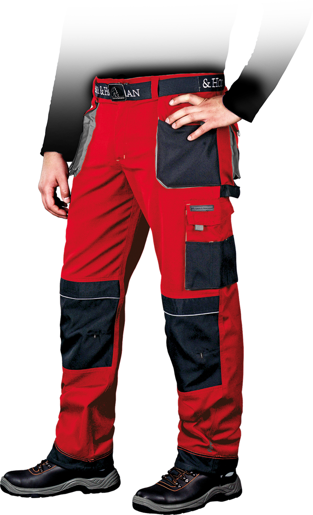 – na kieszeniach, kolanach oraz na dole nogawek dodatkowe wzmocnienie co zwiększa wytrzymałość spodni na przetarcia