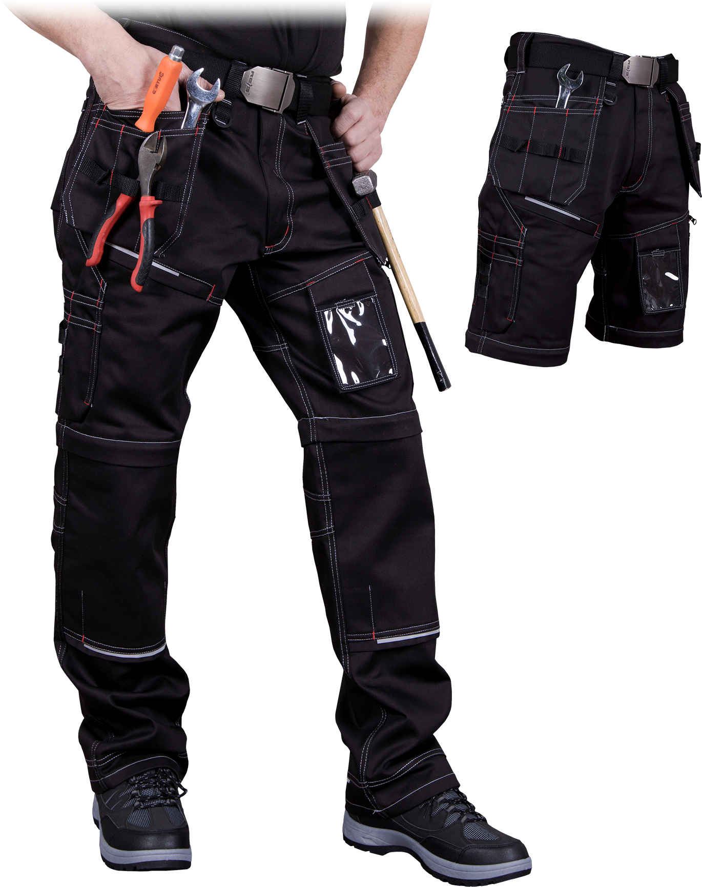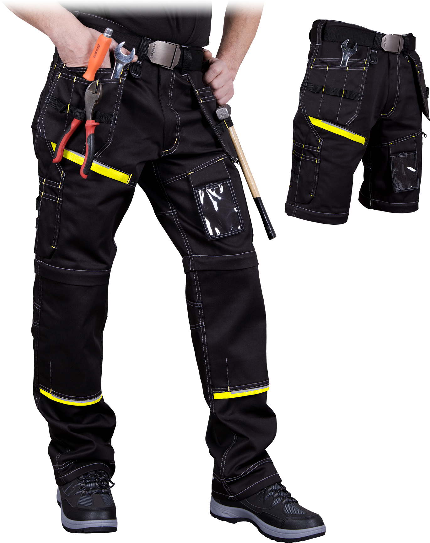 Spodnie ochronne do pasa 2 w 1 z odpinanymi nogawkami.