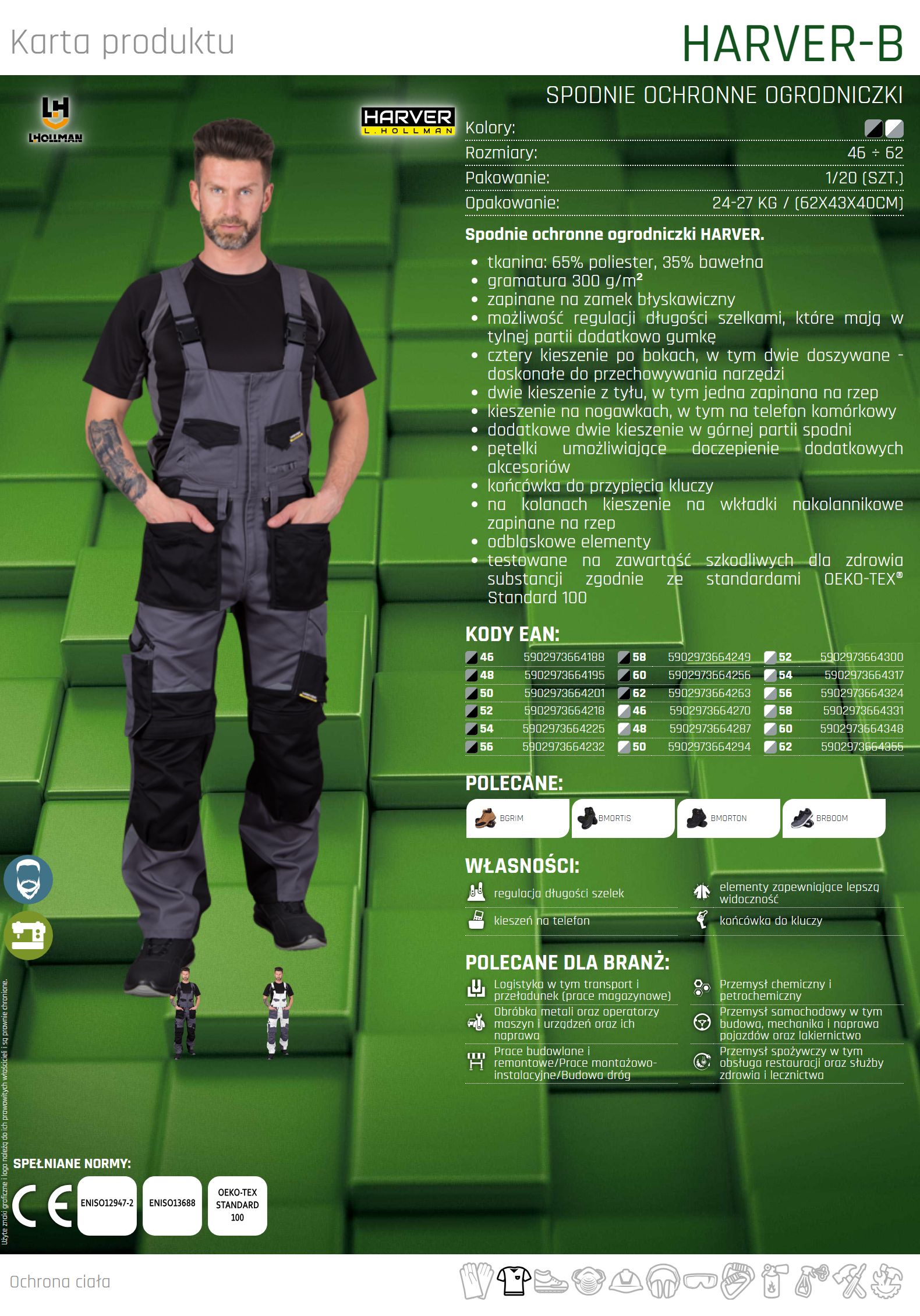 Spodnie ochronne ogrodniczki HARVER.