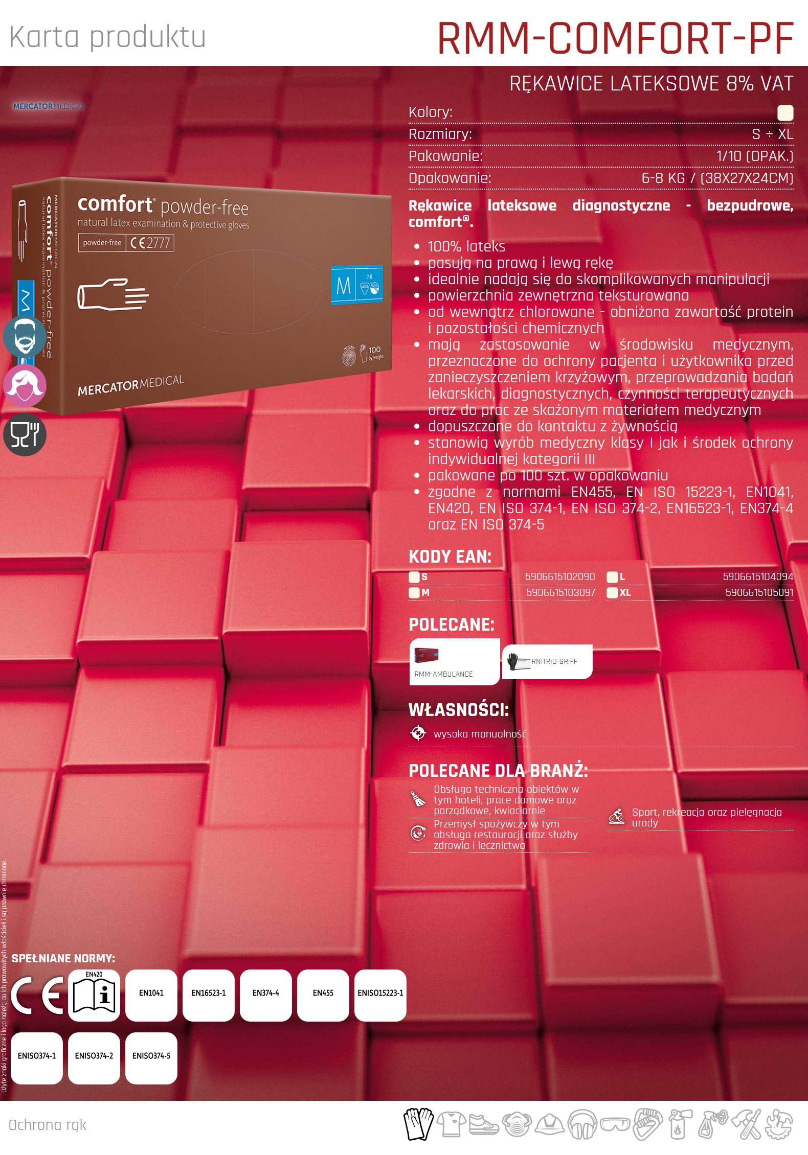– zgodne z normami EN 455, EN ISO 15223-1, EN 1041, EN420, EN388 oraz EN374