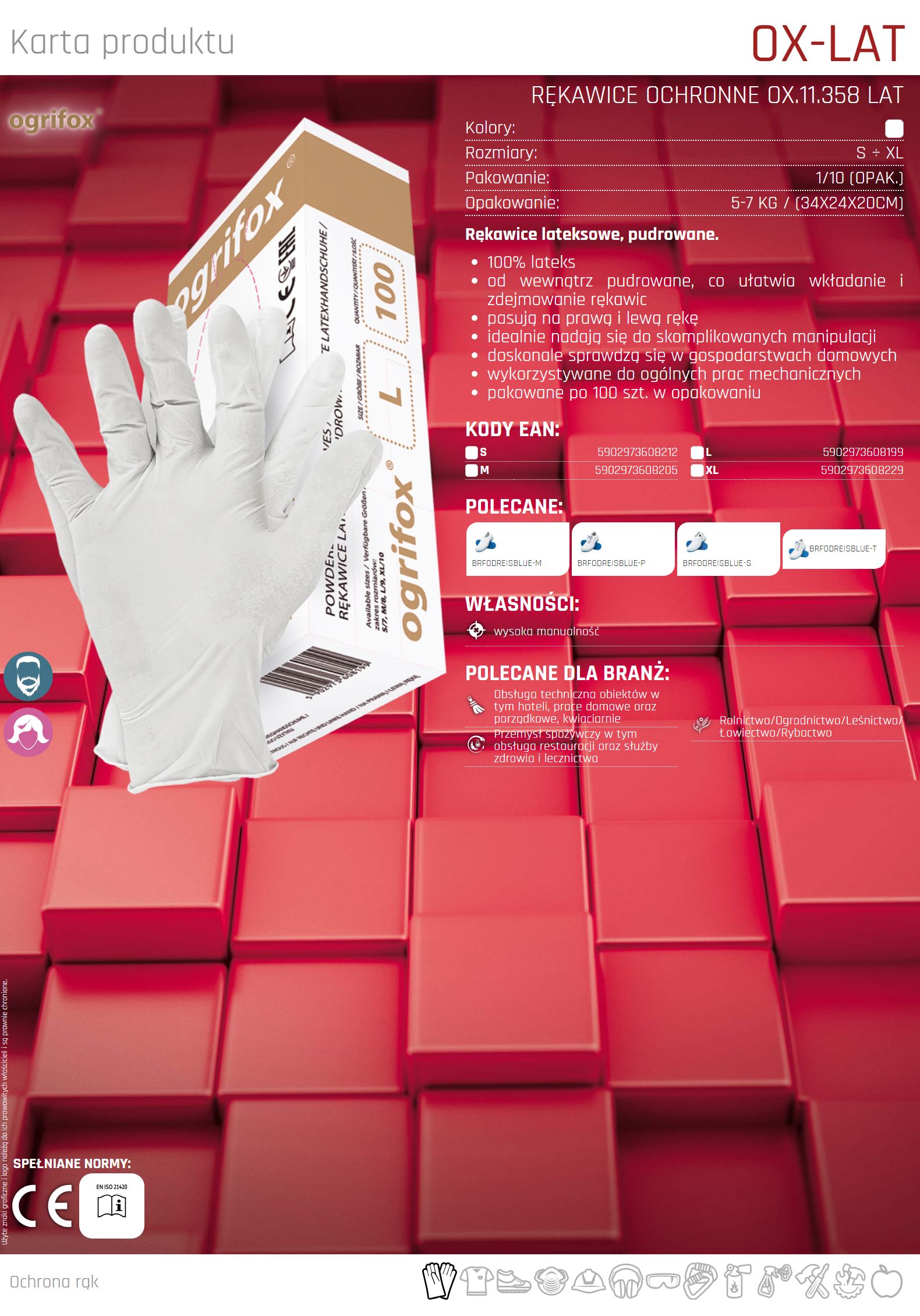 Pudrowane rękawice lateksowe Ogrifox OX-LAT