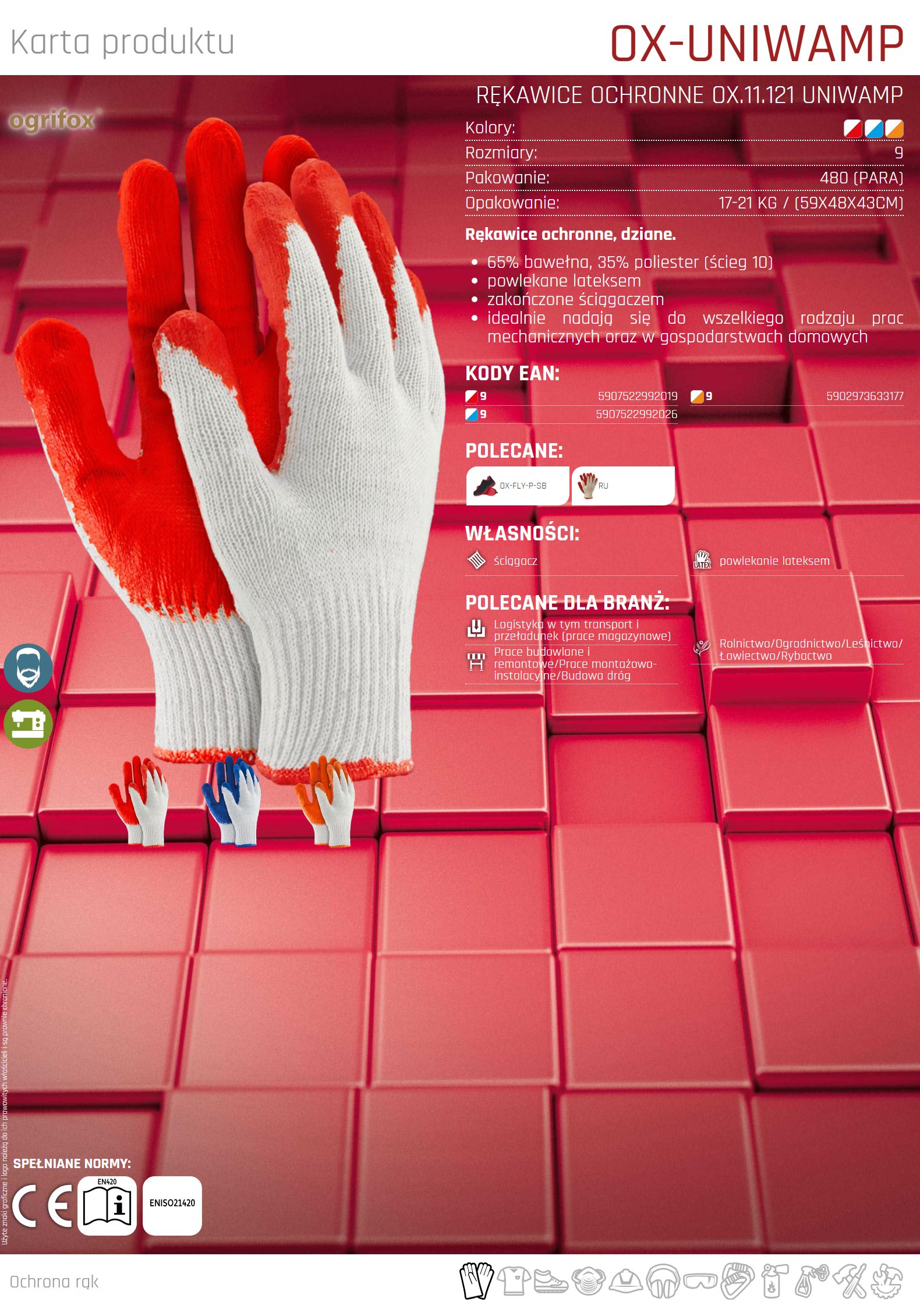 Rękawice ochronne powlekane gumą OX-UNIWAMP WN