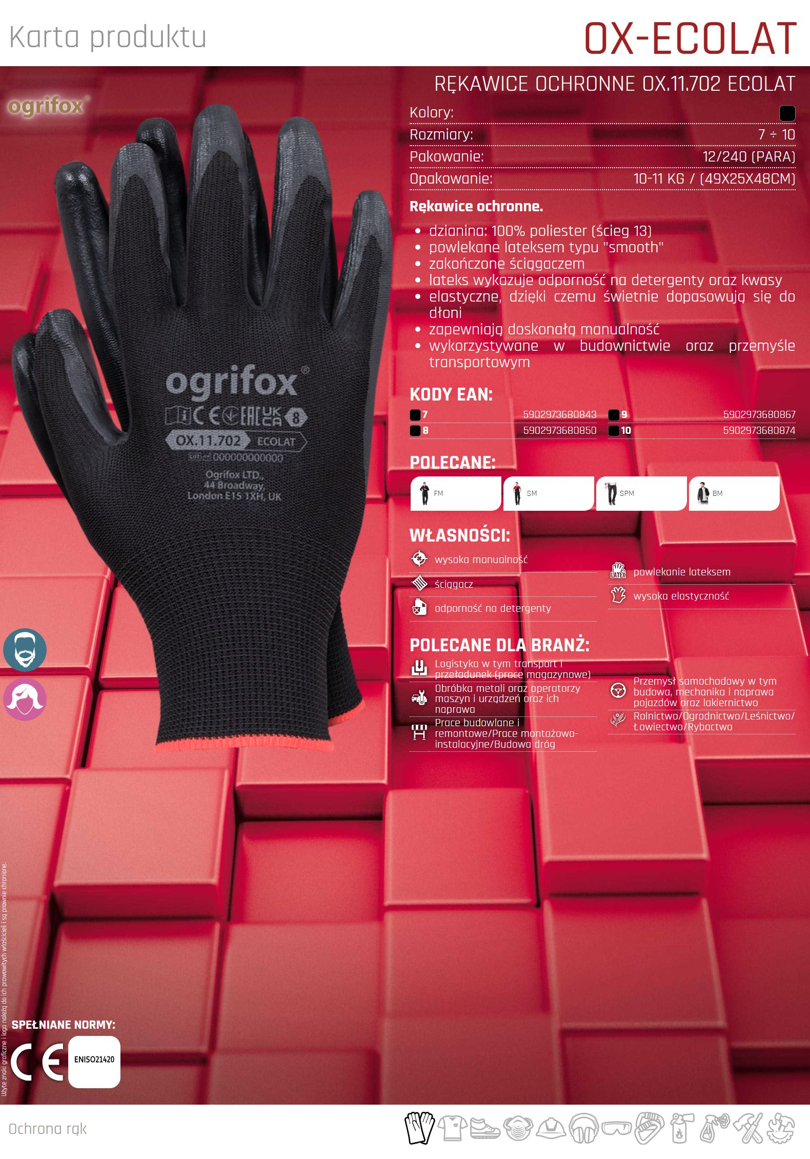 Rękawice ochronne powlekane lateksem typu smooth OX-ECOLAT