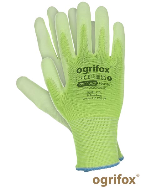 Rękawice ochronne powlekane poliuretanem Ogrifox POLINEO PW – pomarańczowo-białe