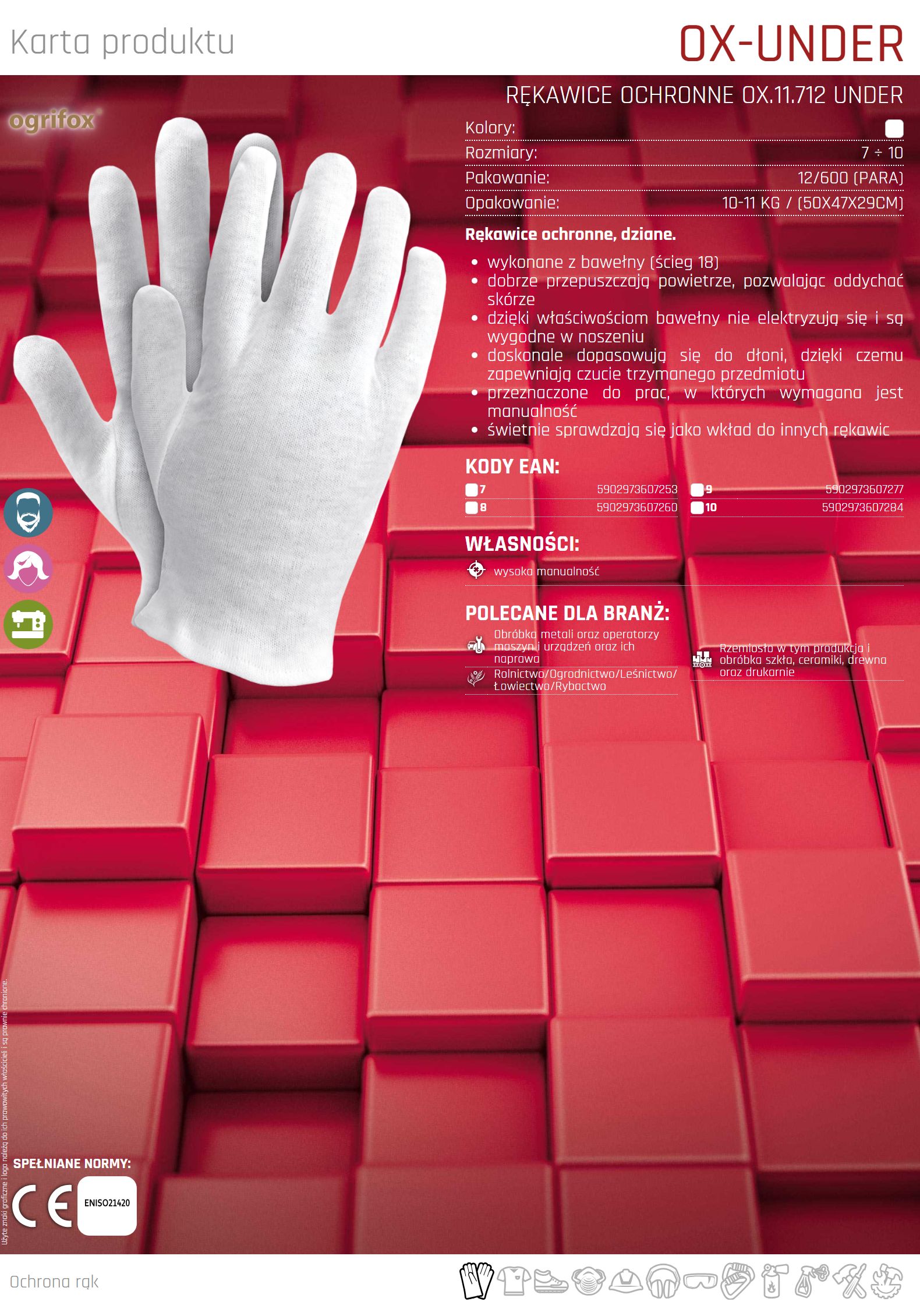 Rękawice ochronne wykonane z bawełny OX-UNDER