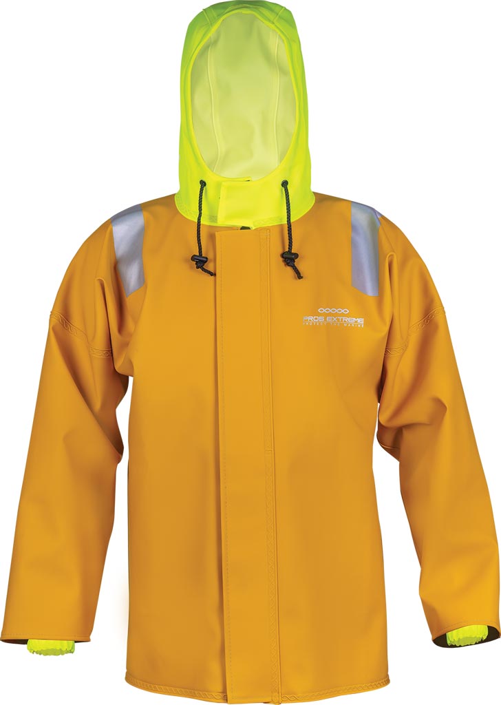 • Sealskin obustronnie powlekany PCV – materiał zapewniający doskonałą odporność na działanie słonej wody oraz uszkodzenia mechaniczne, co sprawia, że kurtka jest idealna do pracy na morzu, w trudnych warunkach atmosferycznych.