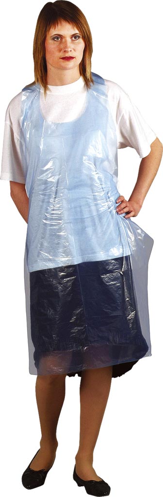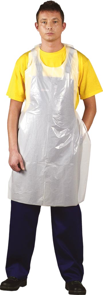 Fartuch przedni foliowy zakładany na szyję z wiązaniem z tyłu pleców.