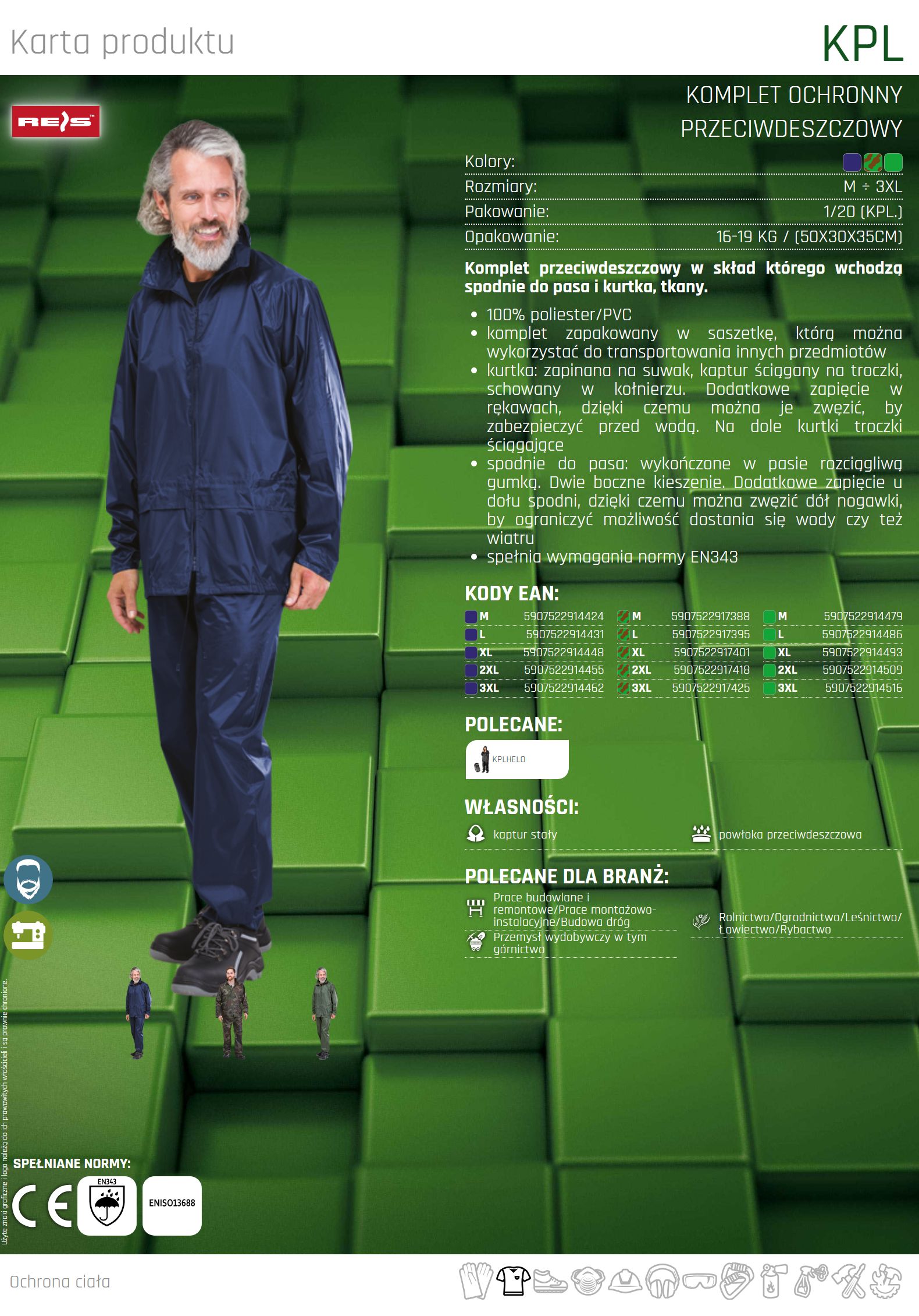 Komplet przeciwdeszczowy w skład którego wchodzą spodnie do pasa i kurtka KPL G