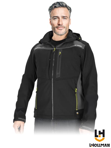 – materiał SOFTSHELL – chroni przed deszczem oraz wiatrem, a jednocześnie pozwala skórze oddychać
