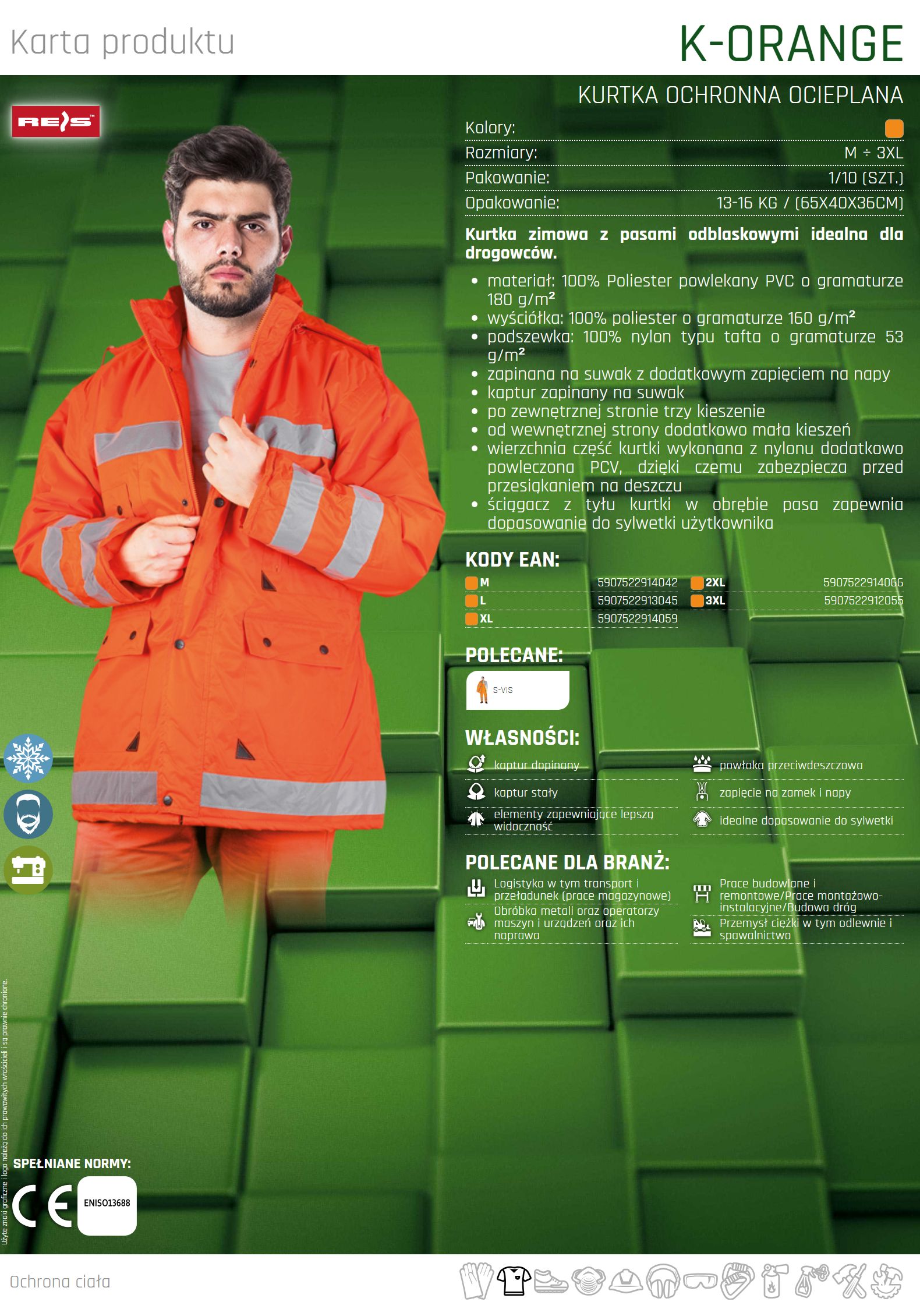 Kurtka zimowa z pasami odblaskowymi idealna dla drogowców K-ORANGE