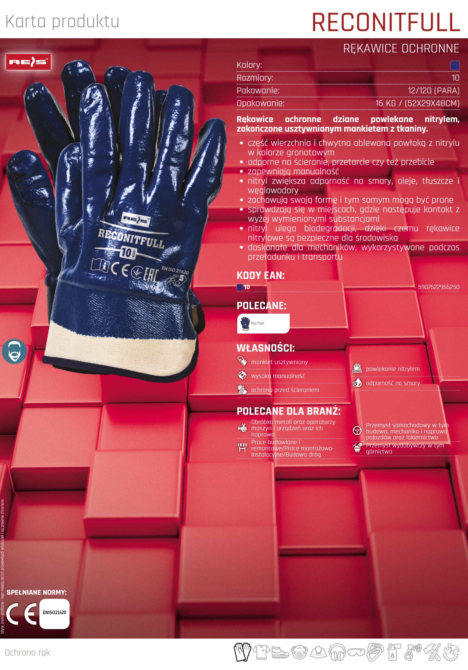 Nitrylowe rękawice ochronne RECONITFULL