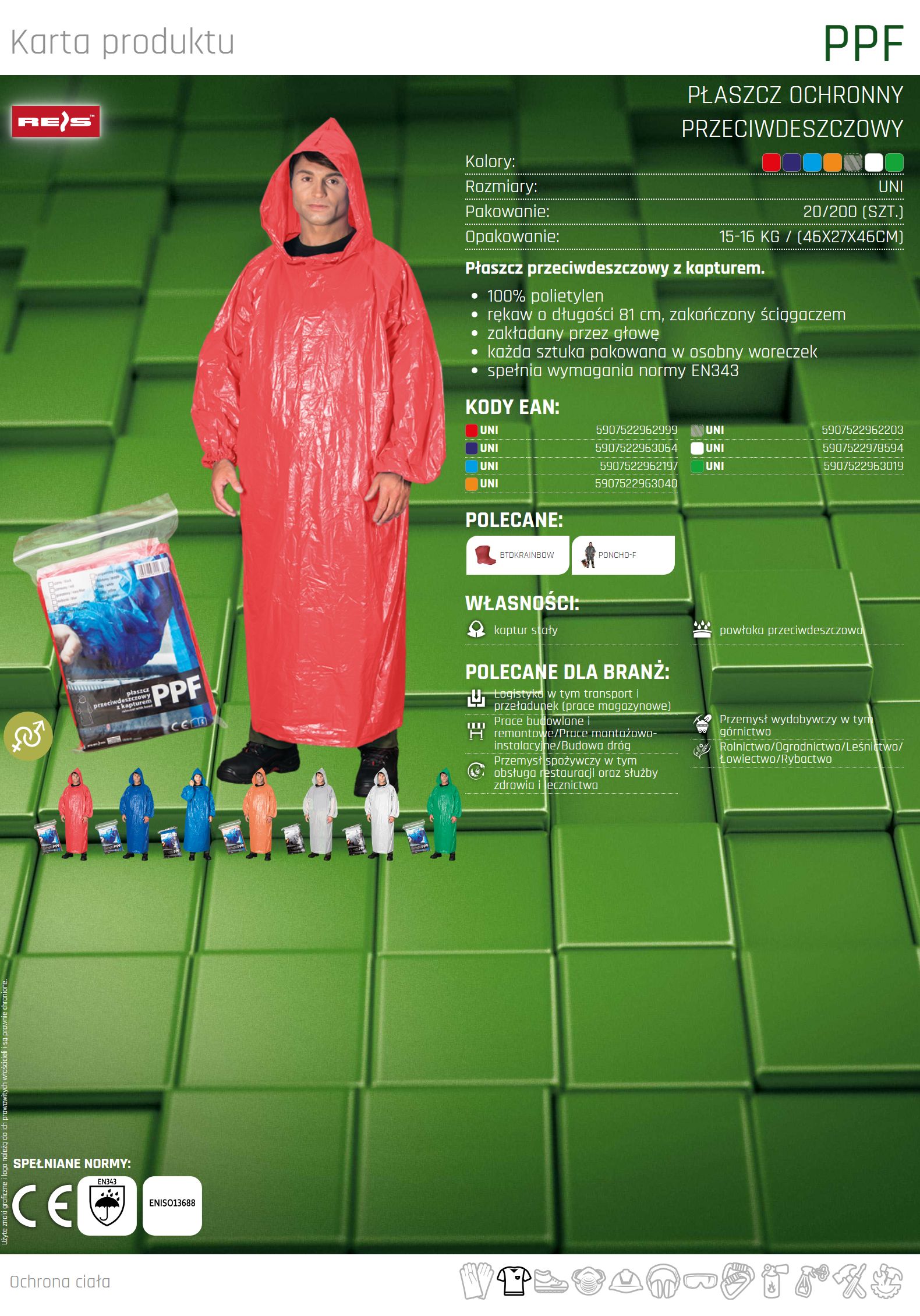 Płaszcz przeciwdeszczowy z kapturem PPF N