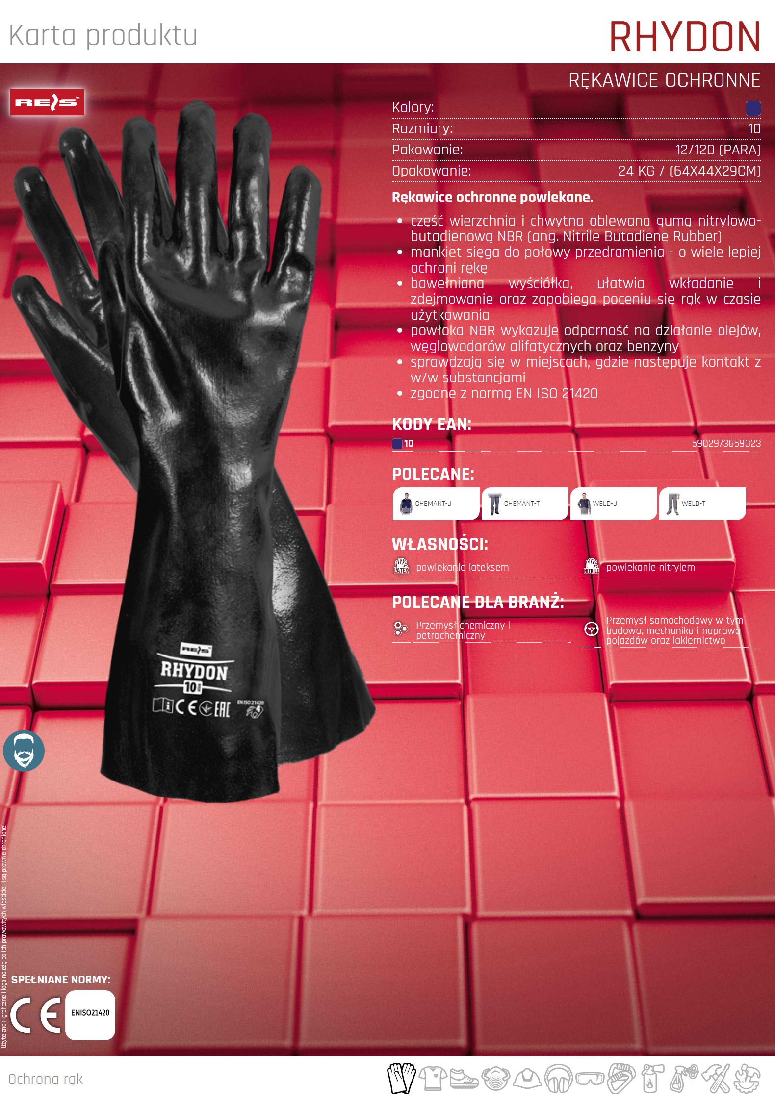 – część wierzchnia i chwytna oblewana NBR (nitrylo-kauczuk)