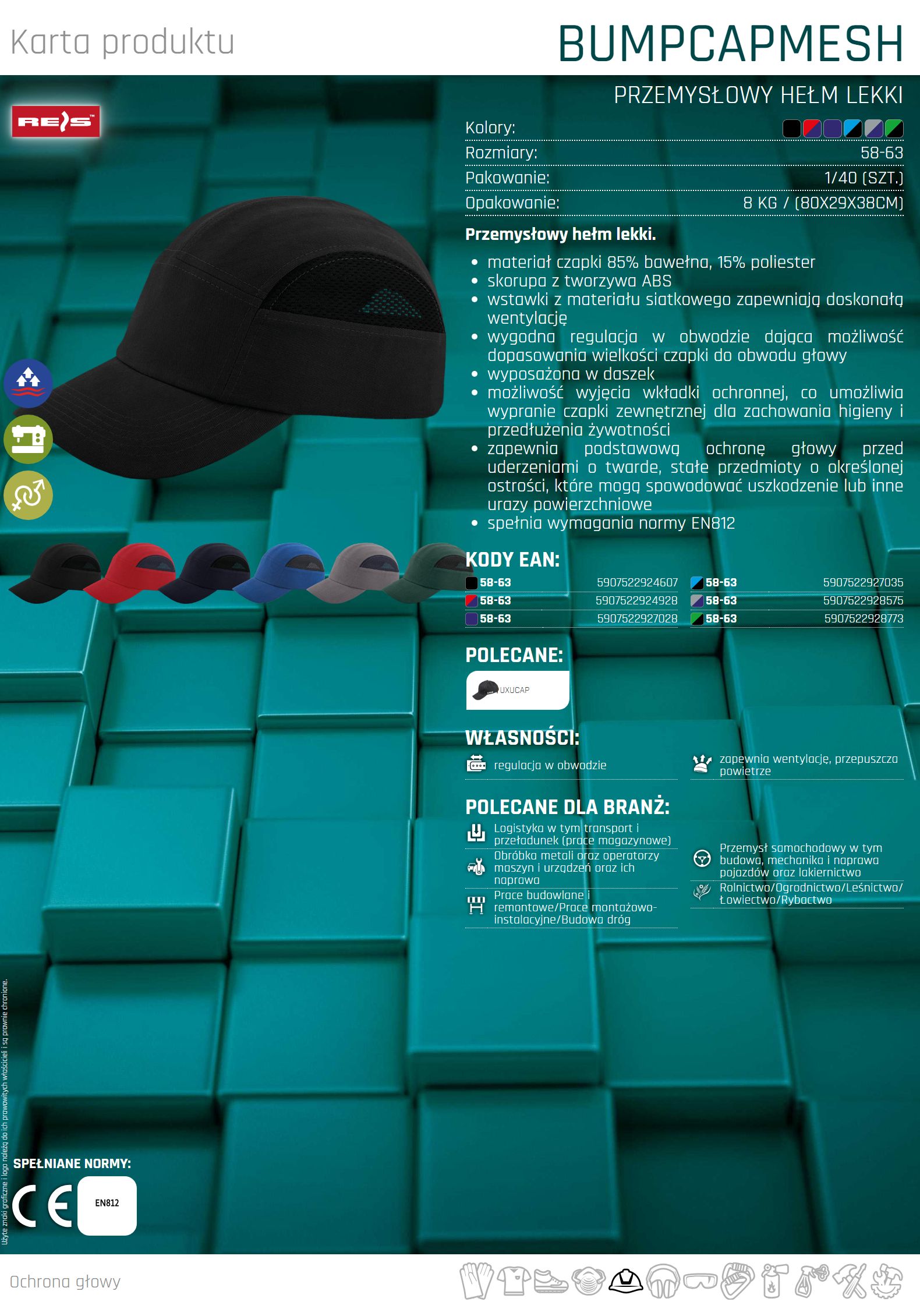 – zapewnia podstawową ochronę głowy przed uderzeniami o twarde, stałe przedmioty o określonej ostrości, które mogą spowodować uszkodzenie lub inne urazy powierzchniowe