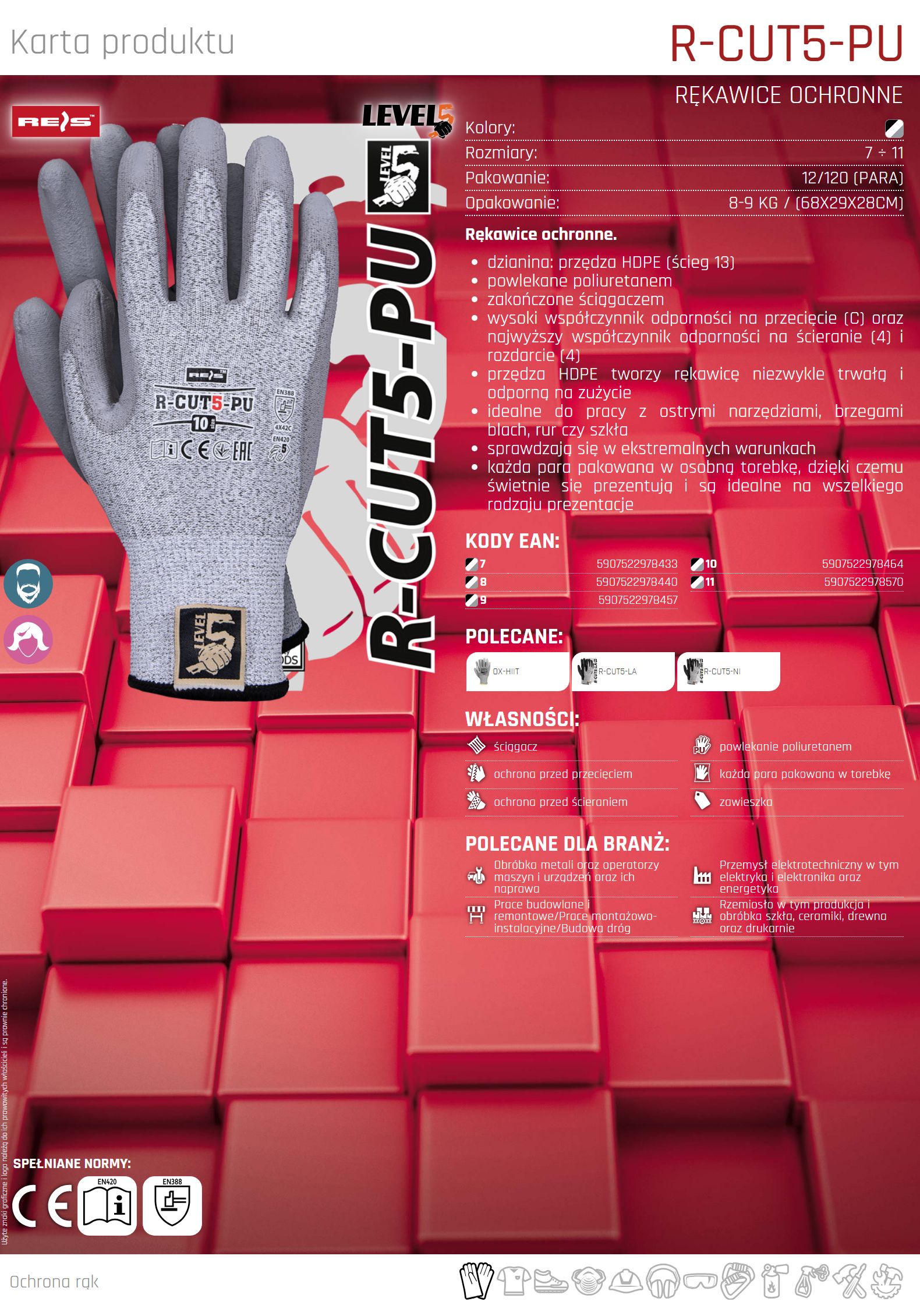 – wysoki współczynnik odporności na przecięcie (C) oraz najwyższy współczynnik odporności na ścieranie (4) i rozdarcie (4)