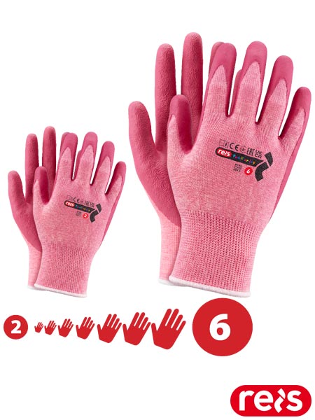 Rękawice ochronne dla dzieci powlekane lateksem Reis FAMILIAR-JOY RR – różowe