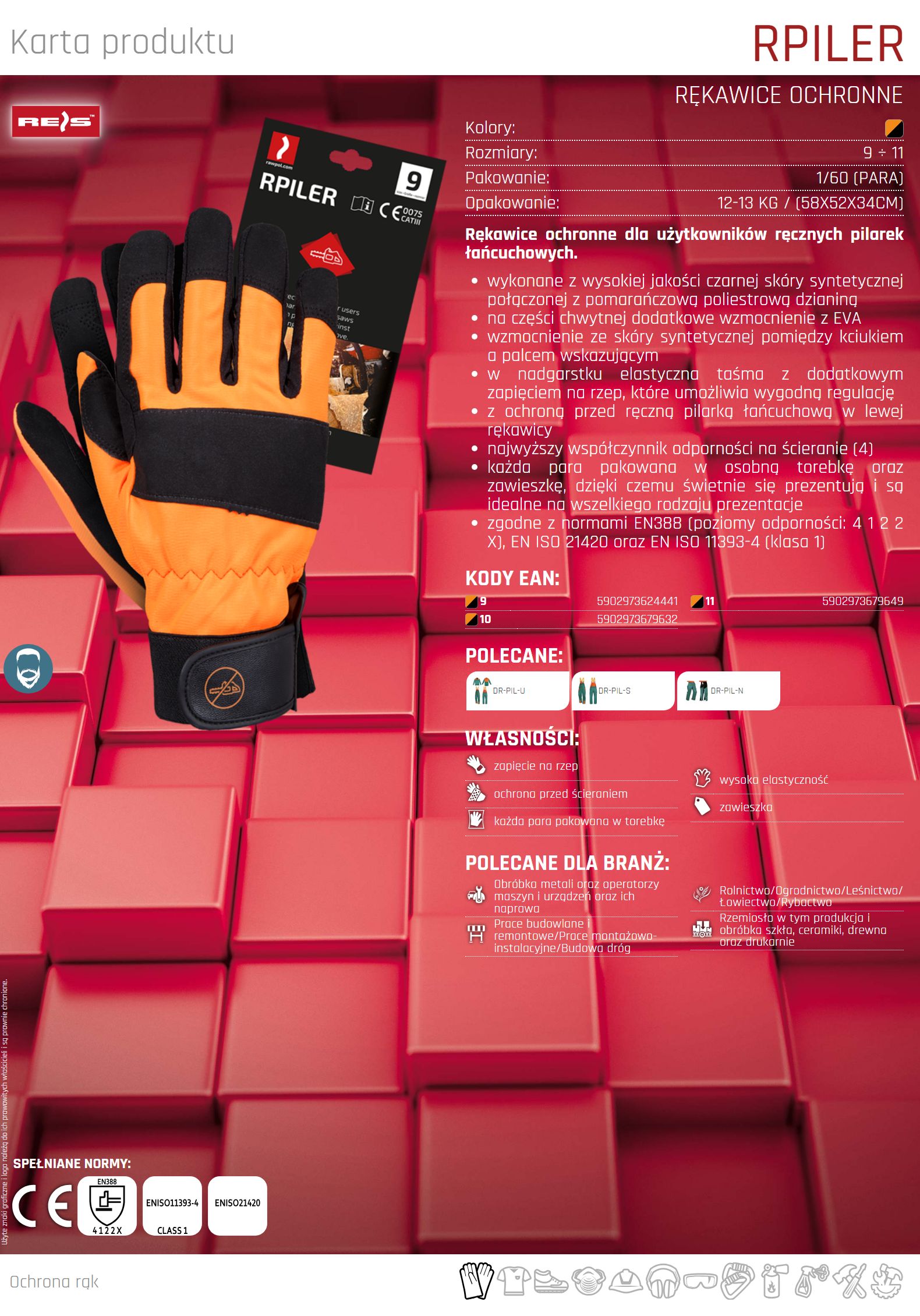 Rękawice ochronne dla użytkowników ręcznych pilarek łańcuchowych RPILER