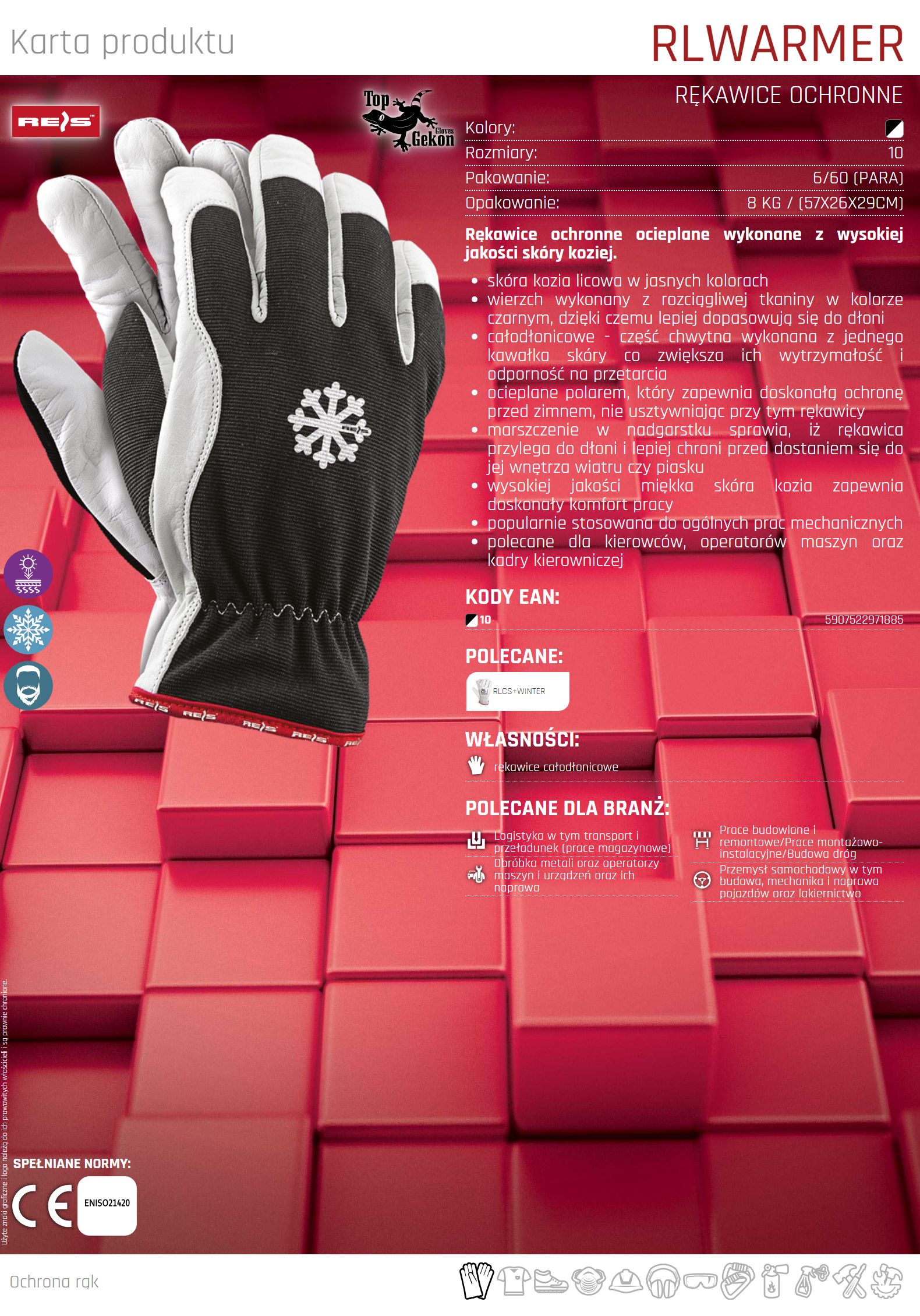 Rękawice ochronne ocieplane RLWARMER