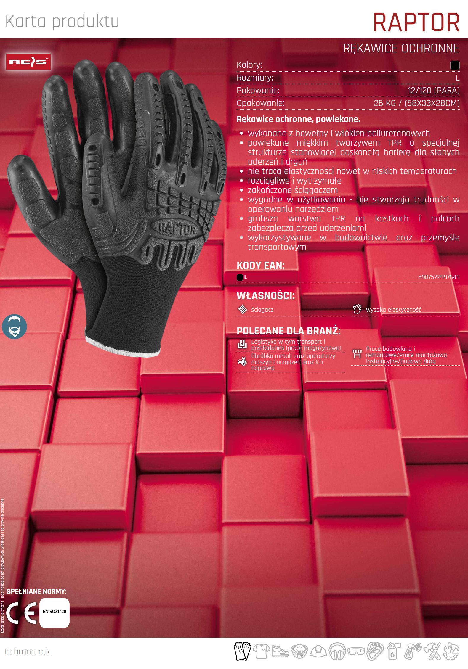Rękawice ochronne, powlekane RAPTOR
