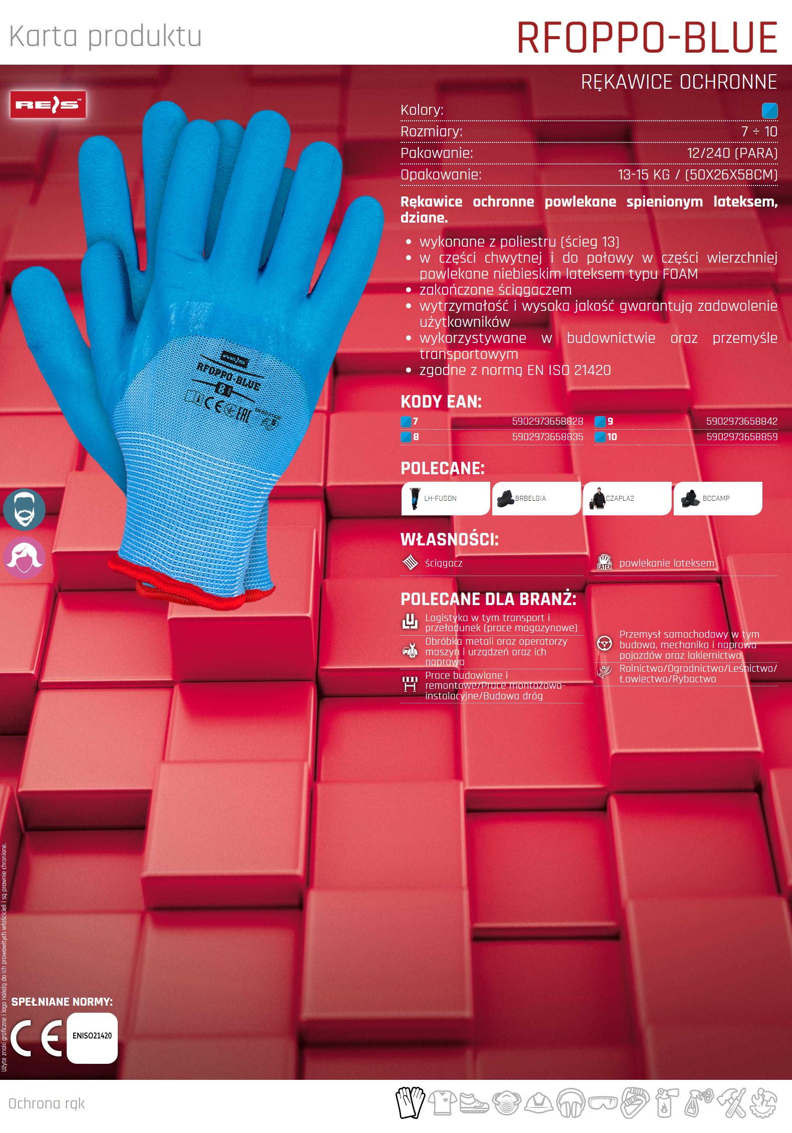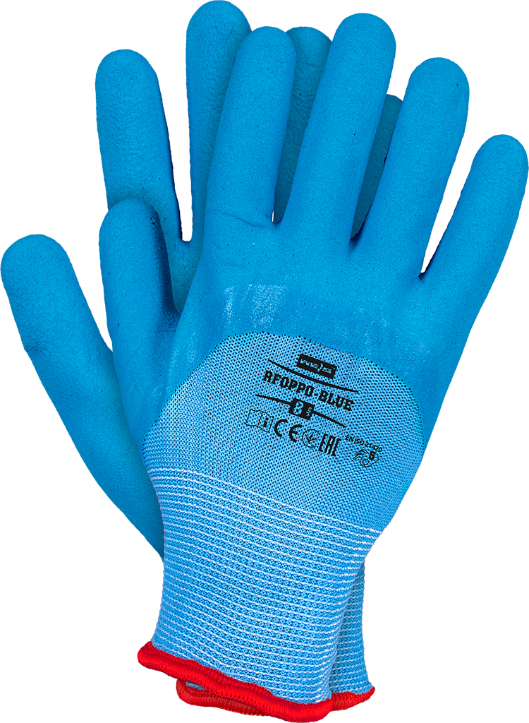 Rękawice ochronne powlekane spienionym lateksem RFOPPO-BLUE
