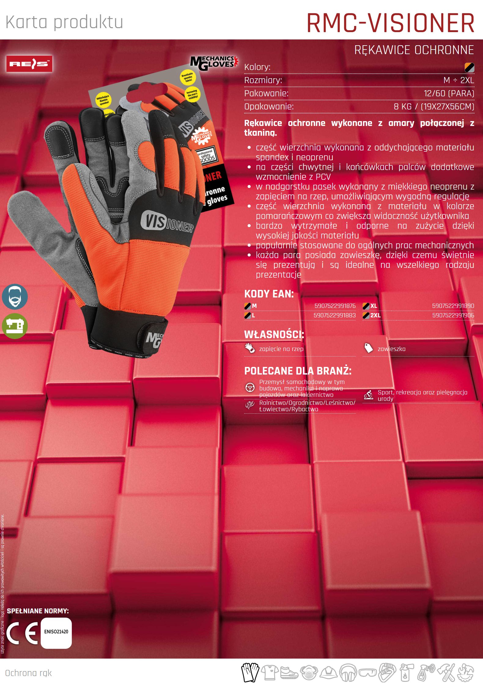 Rękawice ochronne wykonane z amary połączonej z tkaniną RMC-VISIONER