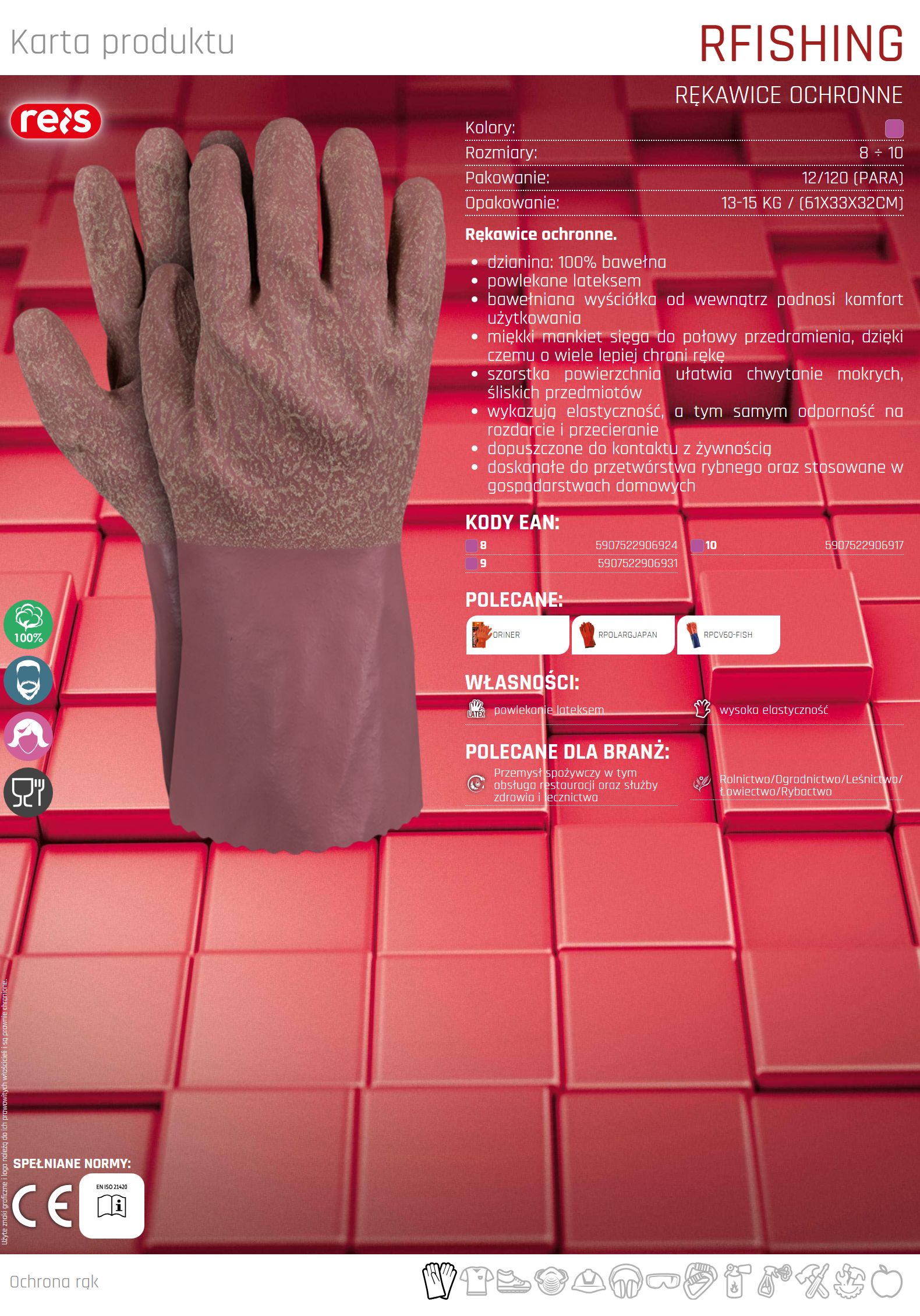 Rękawice ochronne wykonane z latexu RFISHING