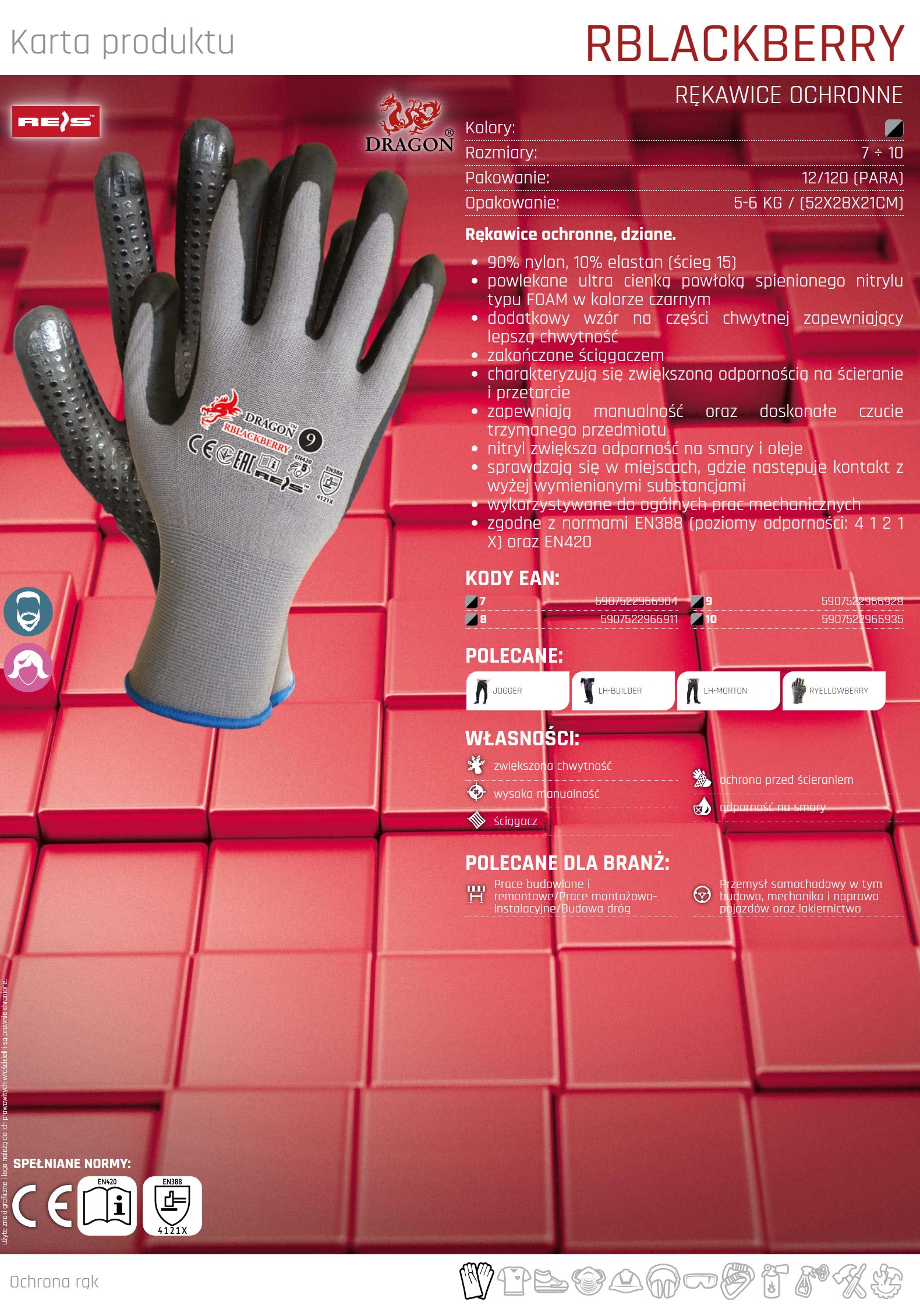 – zgodne z normami EN388 (poziomy odporności: 4 1 2 1 X) oraz EN420