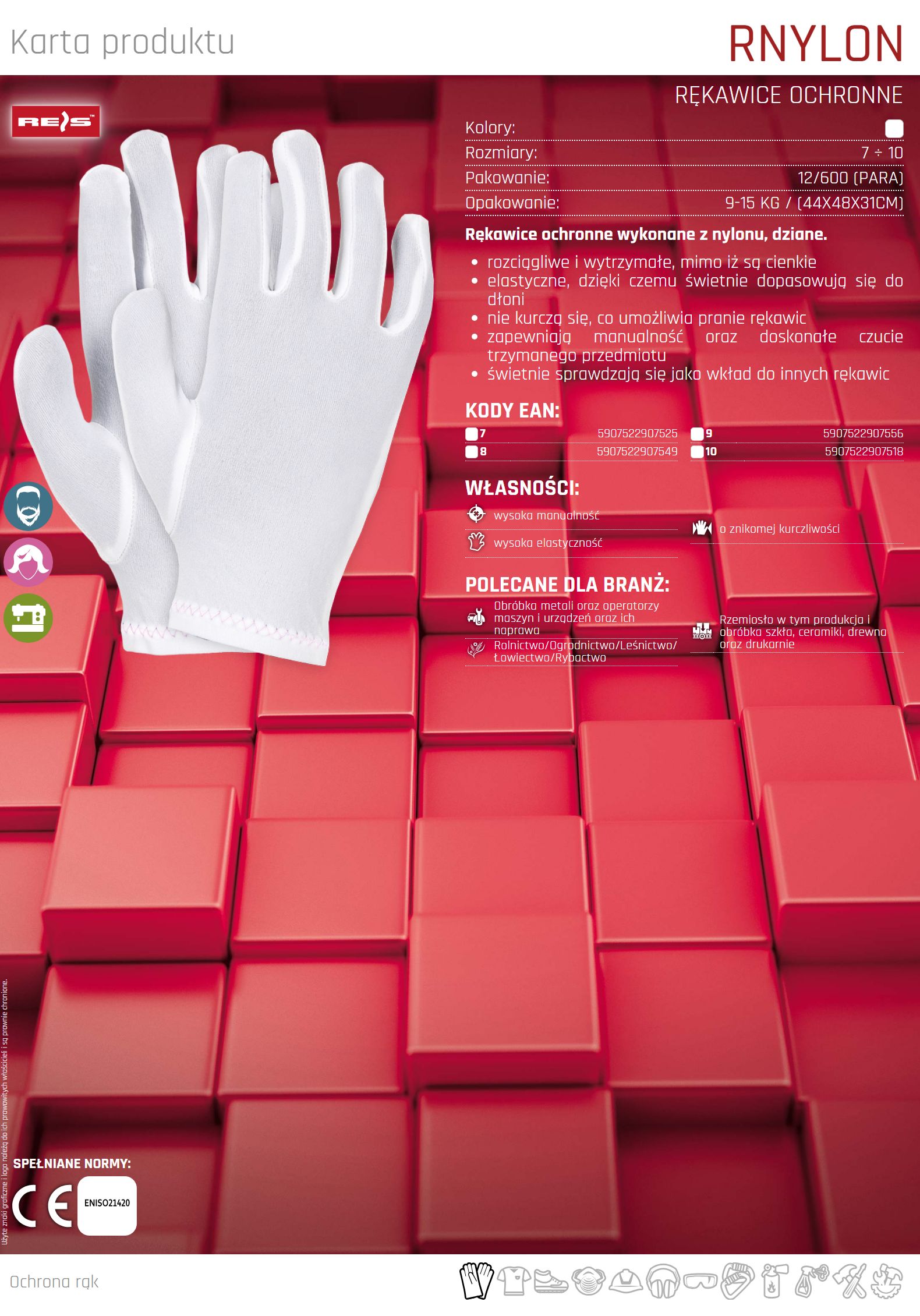 Rękawice ochronne wykonane z nylonu RNYLON