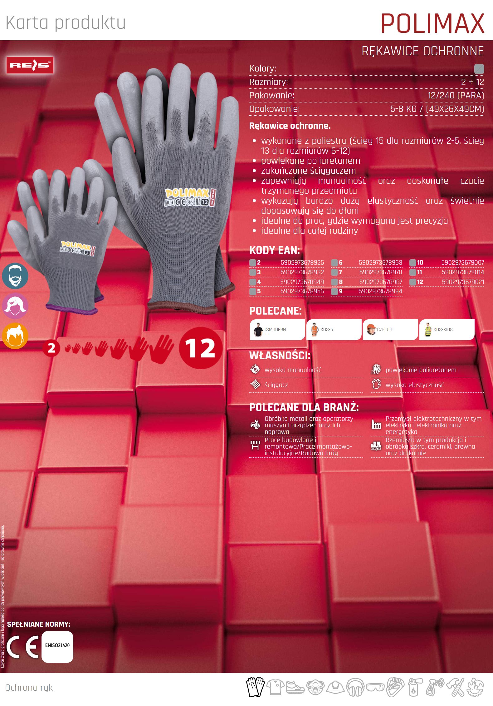 Rękawice ochronne wykonane z poliestru powlekane poliuretanem POLIMAX