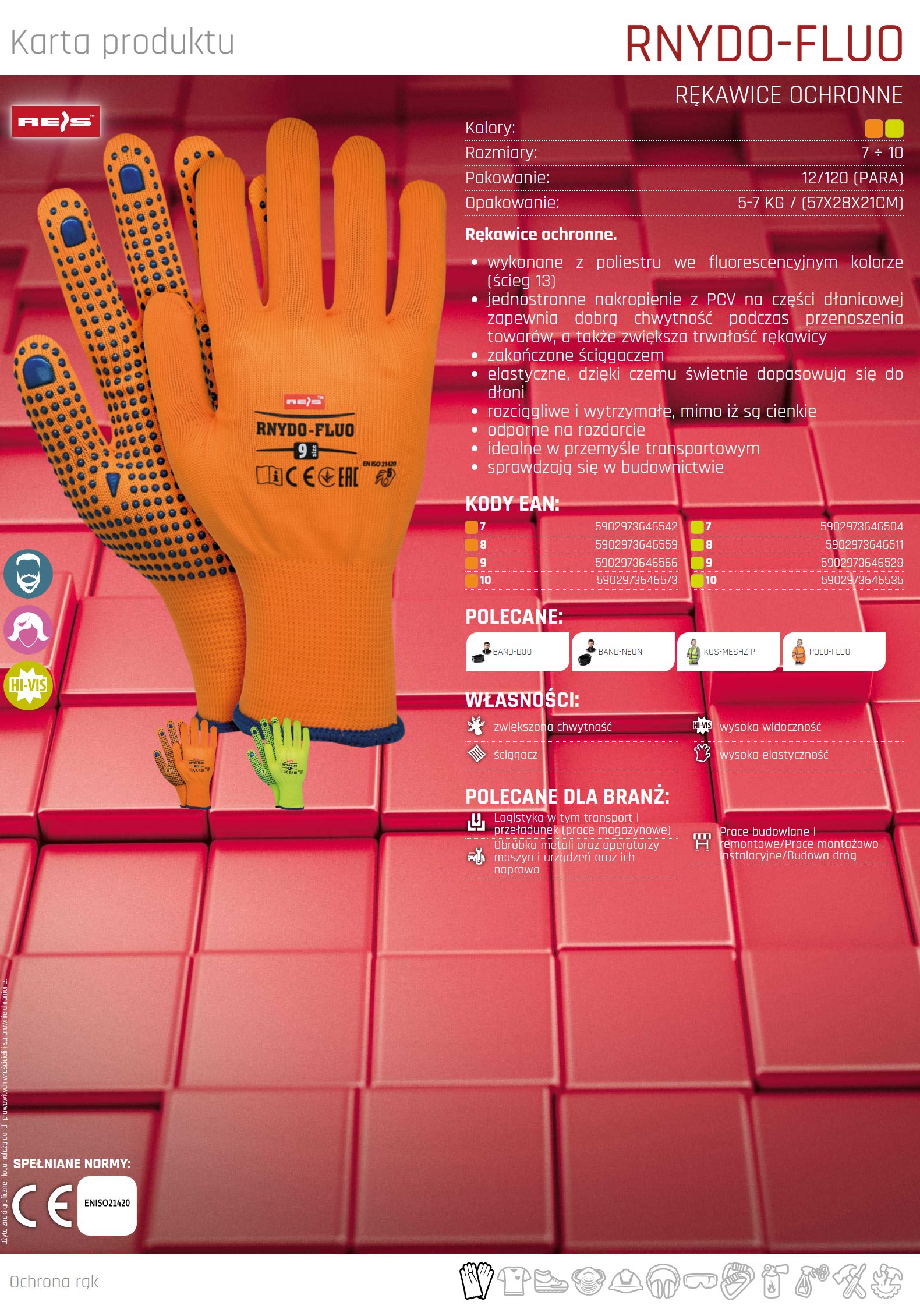 Rękawice ochronne wykonane z poliestru RNYDO-FLUO SE