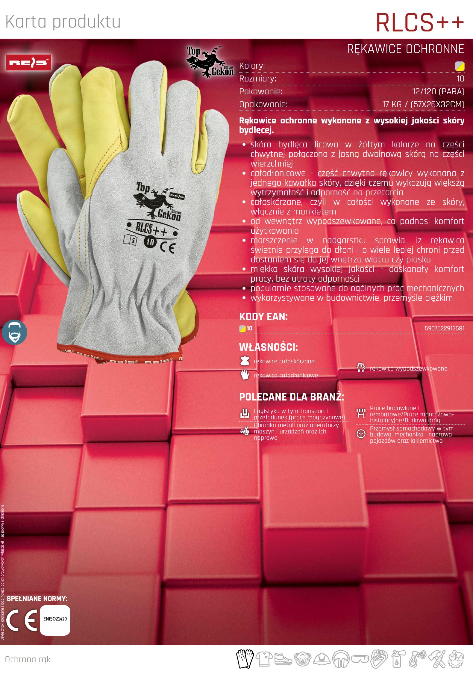 Rękawice ochronne wykonane z skóry bydlęcej RLCS++