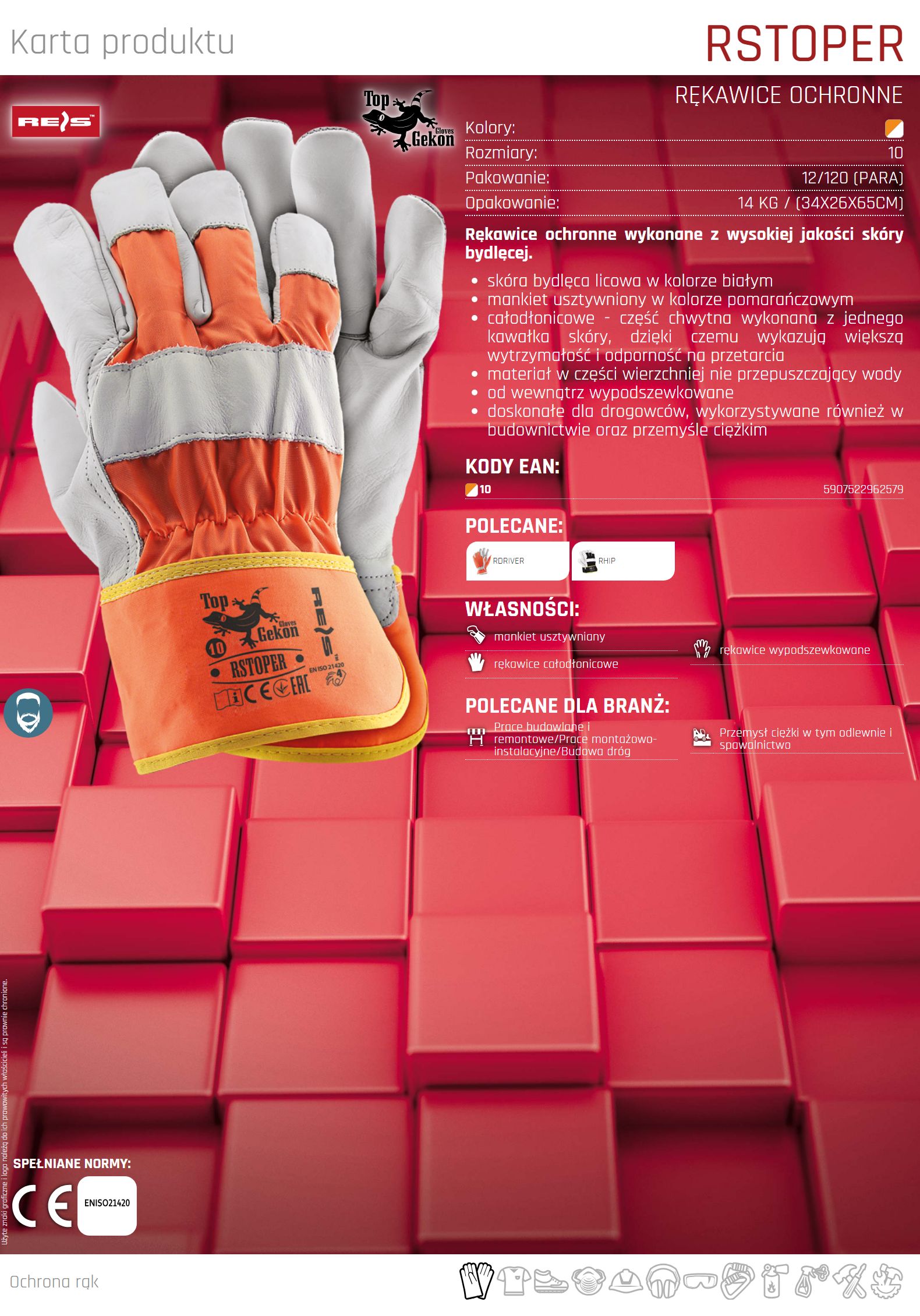 Rękawice ochronne wykonane z skóry bydlęcej RSTOPER