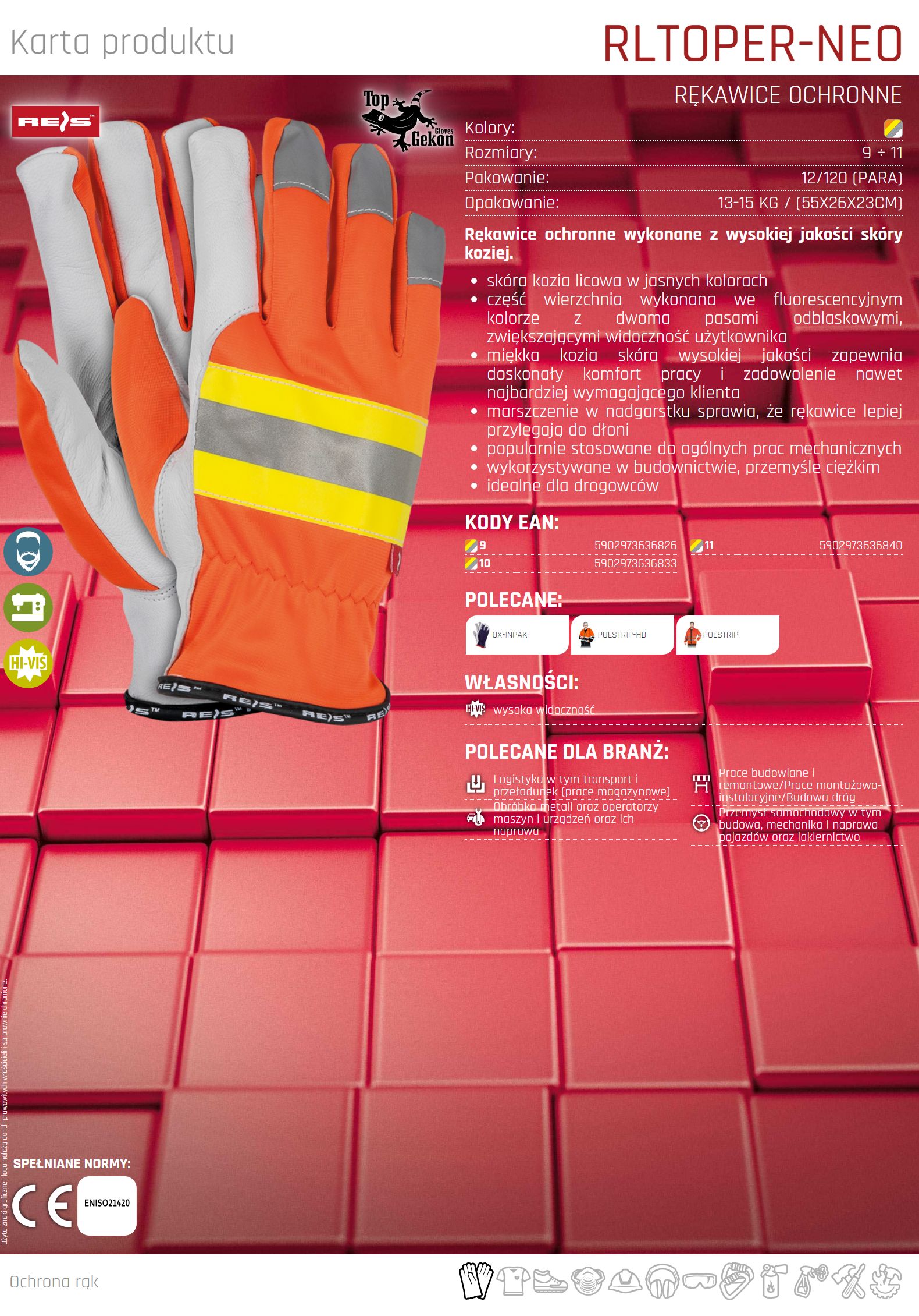 Rękawice ochronne wykonane z skóry koziej RLTOPER-NEO