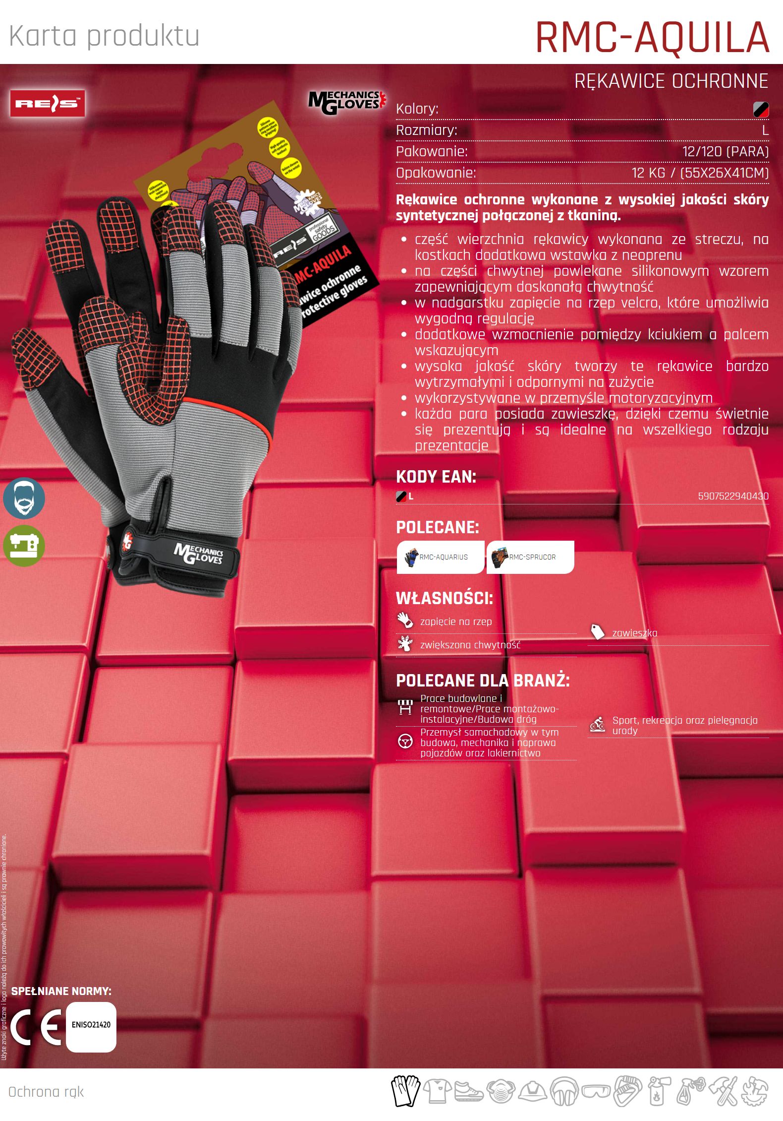 Rękawice ochronne wykonane z skóry syntetycznej RMC-AQUILA