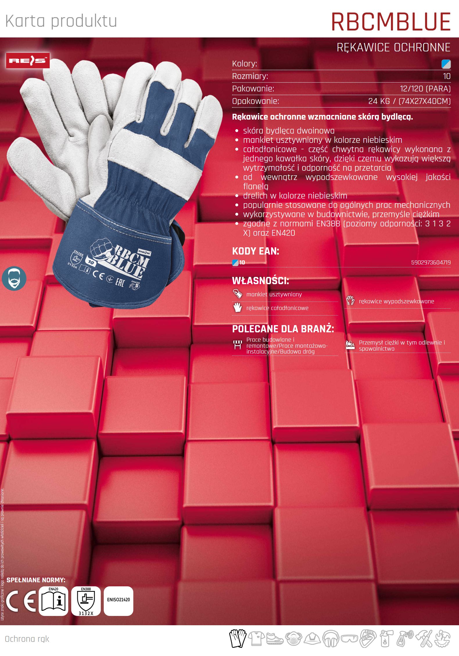 Rękawice ochronne wzmacniane skórą bydlęcą RBCMBLUE