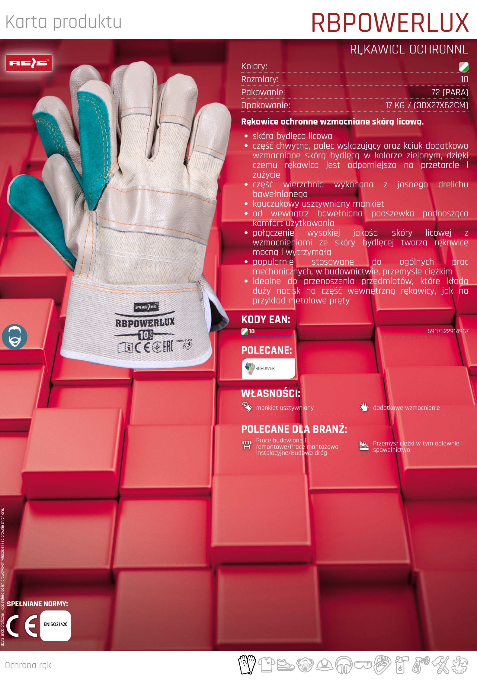 Rękawice ochronne wzmacniane skórą licową RBPOWERLUX