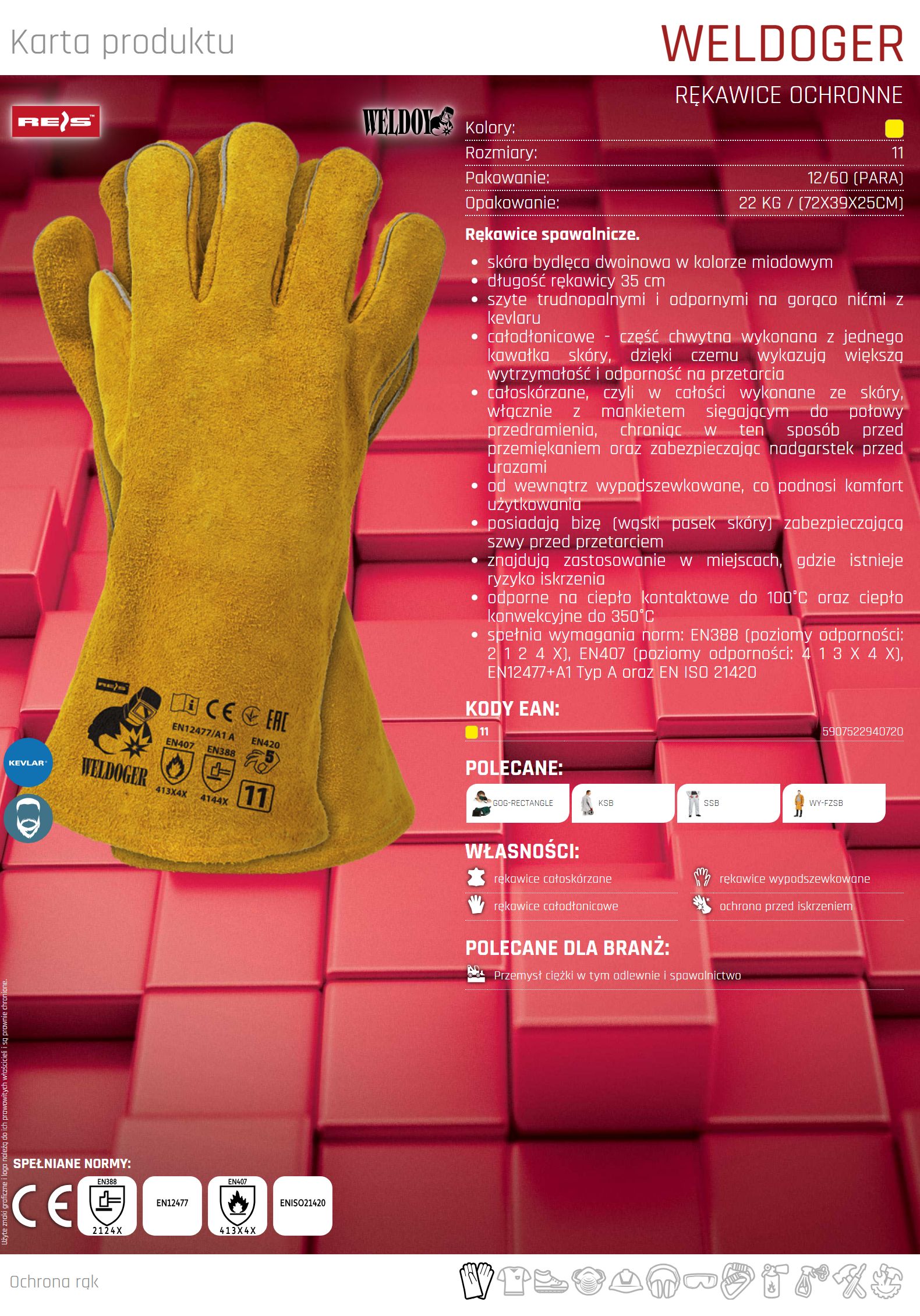 Rękawice spawalnicze ze skóry bydlęcej WELDOGER