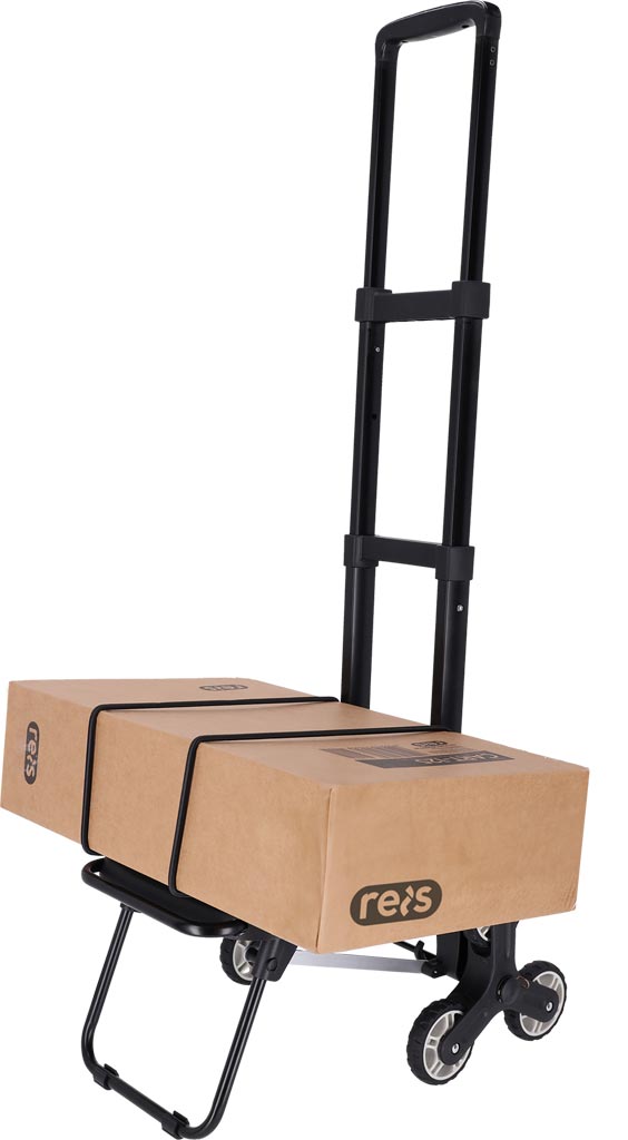 – idealny do przenoszenia ładunków po schodach dzięki innowacyjnym potrójnym zestawom kółek, które obracają się wokół własnej osi, zapewniając płynny i stabilny ruch nawet na stromych stopniach