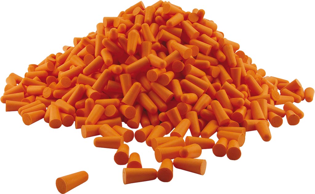 Jednorazowe wkładki przeciwhałasowe do uszu wykonane z pianki poliuretanowej.