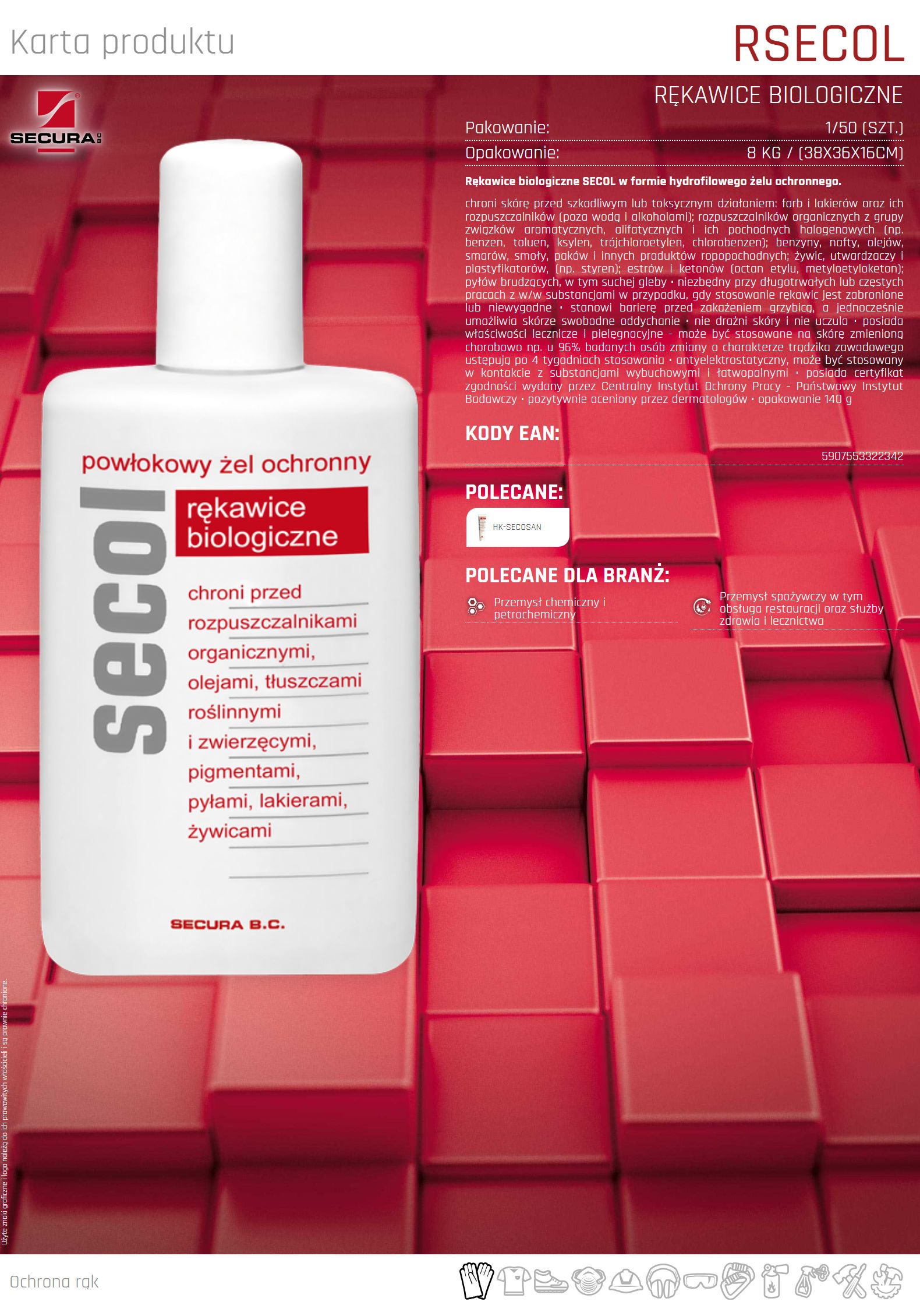 Rękawice biologiczne SECOL w formie hydrofilowego żelu ochronnego.