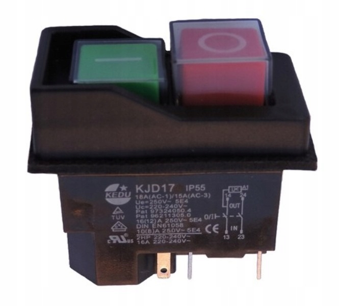 Włącznik wyłącznik elektromagnetyczny firmy KEDU KJD17 stosowany w betoniarkach marki: Altrad Spomasz, Belle Poland, Defro, Limex.