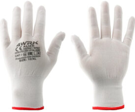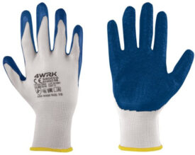 Rękawice poliestrowe w kolorze białym powlekane warstwą niebieskiego lateksu 4WRK SIROCCO KS3003 WBL